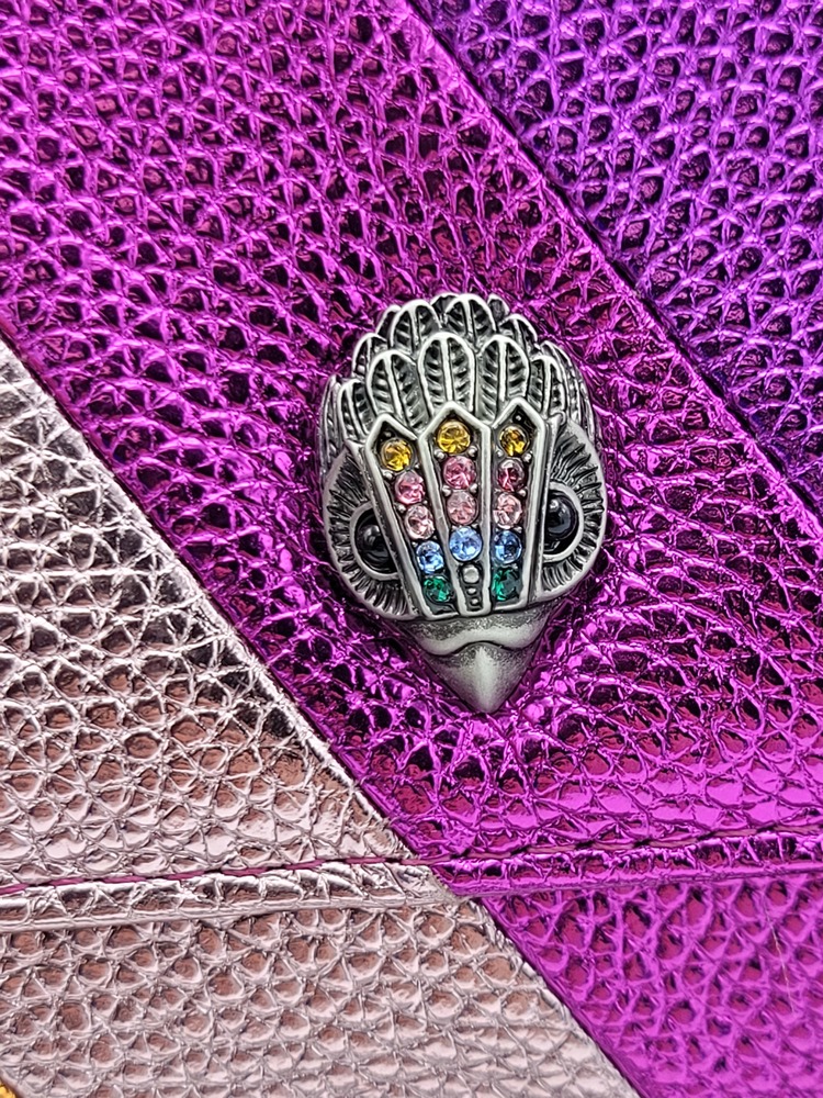 Bring on the color! This gorgeous Kurt Geiger London Kensington WOC is a total statement piece with its bold metallic rainbow stripes, signature crystal-embellished eagle head, and chunky silver-tone chain strap. It’s compact, eye-catching, and the perfect pop of personality for any outfit. Wear it crossbody, as a shoulder bag, or tuck the chain inside and use it as a clutch.