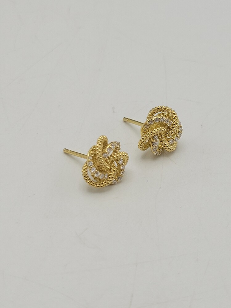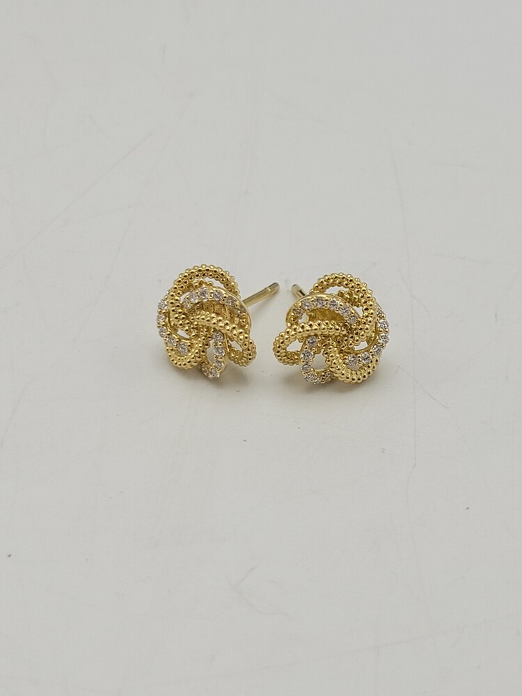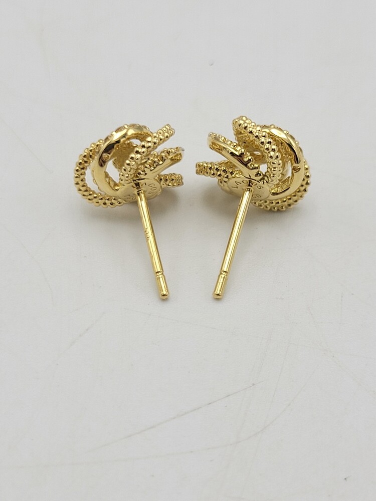 Beautiful authentic LAGOS Love Knot stud earrings crafted in rich 18K gold (750) and set with sparkling diamonds. The signature caviar beading and interwoven knot design give these studs that classic, sculptural Lagos look — elegant, dimensional, and instantly recognizable.