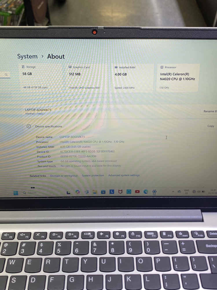 - ?Processor?Intel Celeron N4020 Processor (2 Cores, 2 Threads, Base Frequency at 1.1 GHz, Up to 2.8 GHz at Max Turbo Frequency)