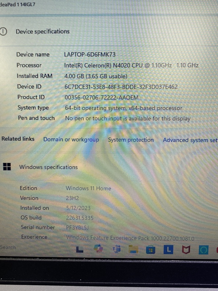 Lenovo Ideapad 1i 14IGL7 Intel Celeron N4020 1.10 GHz 4GB 64GB eMMC W11H