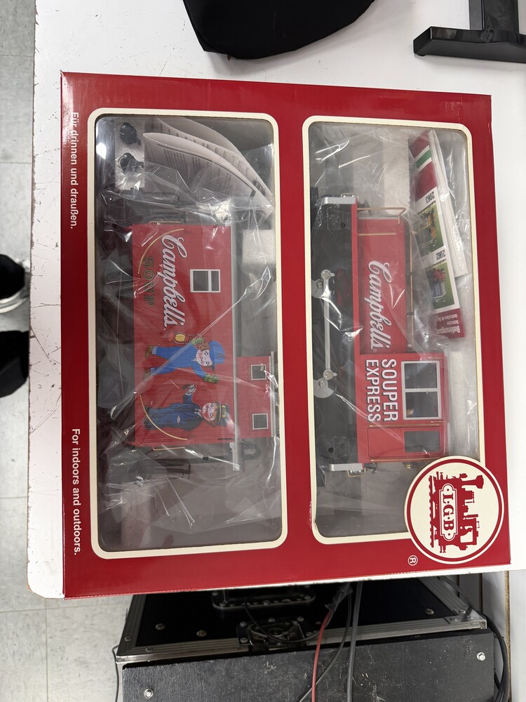 unused/opened box Collectibles / Art LGB 70630 #276610 LGB 70630 LIMITED EDITION 1996 Campbell's Souper Express Set unopened. comes with all accessories. no damage on either train/ or any signs of usage.
