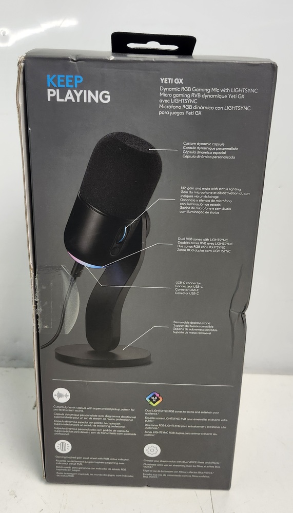 Logitech Yeti GX dynamic USB gaming microphone with RGB LIGHTSYNC lighting. Great for streaming, gaming, and voice chat. Fully functional and ready to use.