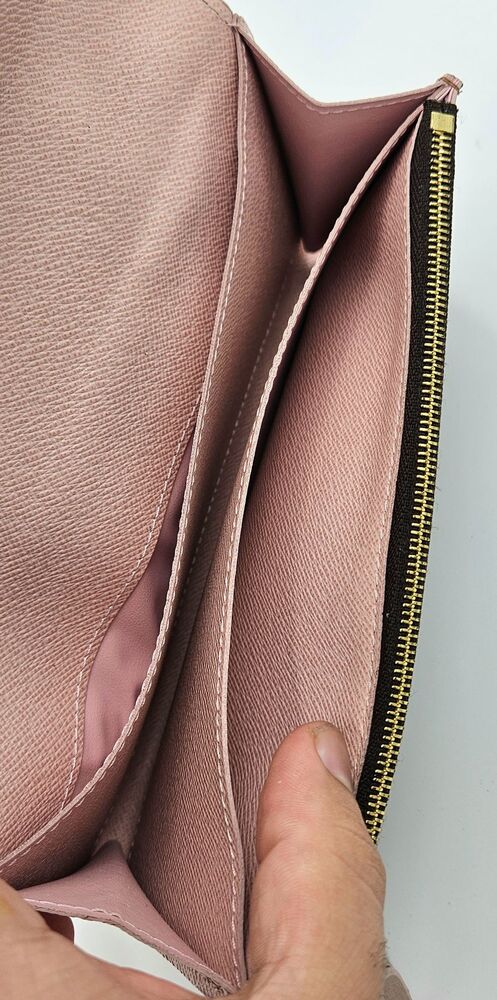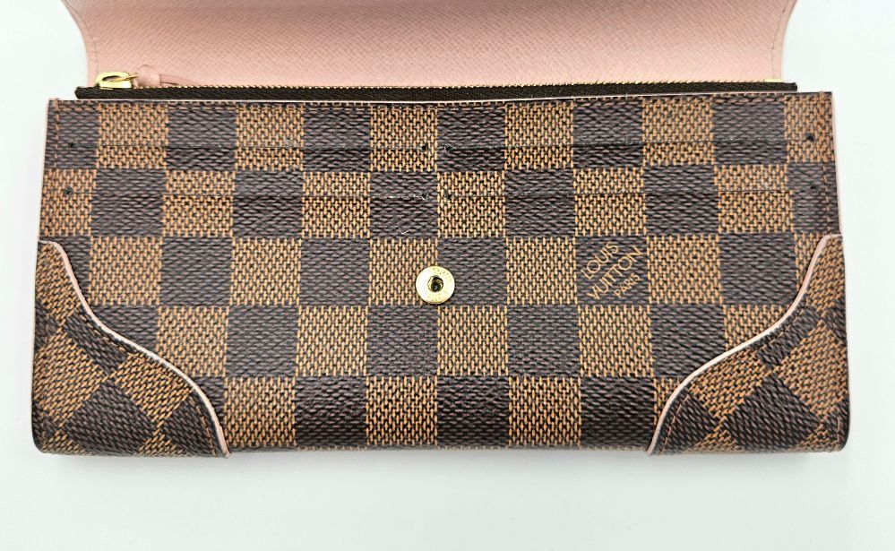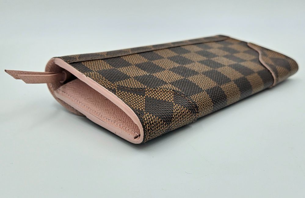 • This authentic Louis Vuitton Caissa wallet features the iconic Damier Ebene canvas with elegant gold-tone details. Compact yet functional, it includes multiple compartments for cards and essentials. Please note: the wallet has an odor, which needs cleaning. please lool at pictures to see condition