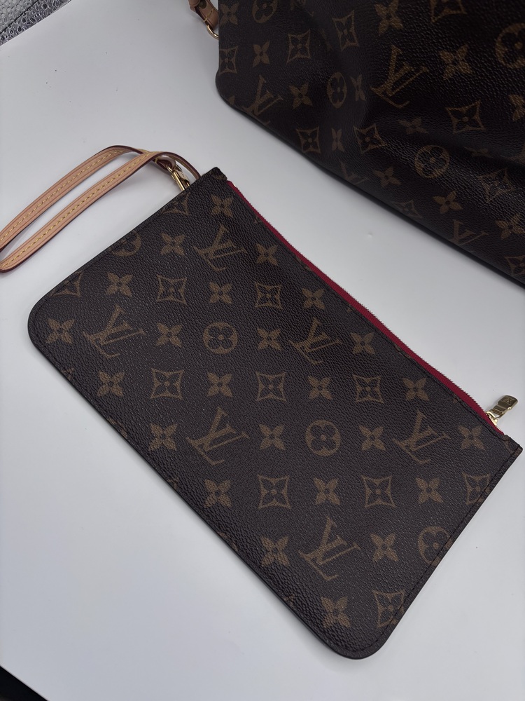 Louis Vuitton Canvas Neverfull MM Tote With Clutch