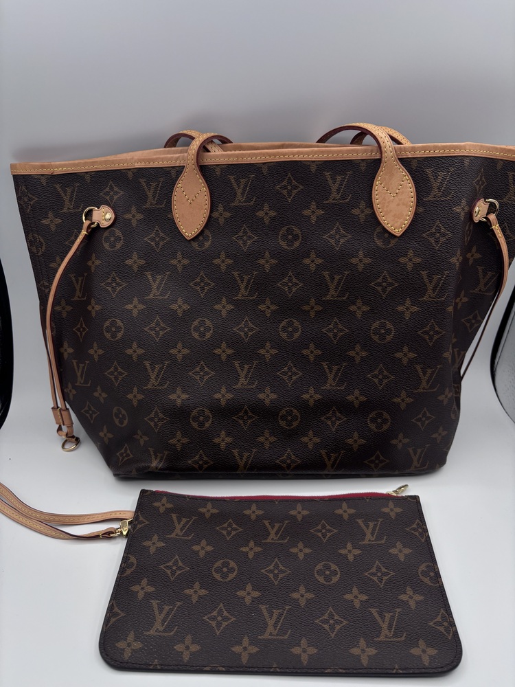 Upgrade your collection with this stunning Louis Vuitton Neverfull MM Tote, complete with the matching removable clutch. This set is pre-owned but in exceptional, almost-new condition, showcasing minimal signs of use and outstanding overall cleanliness.