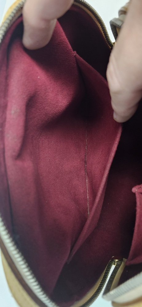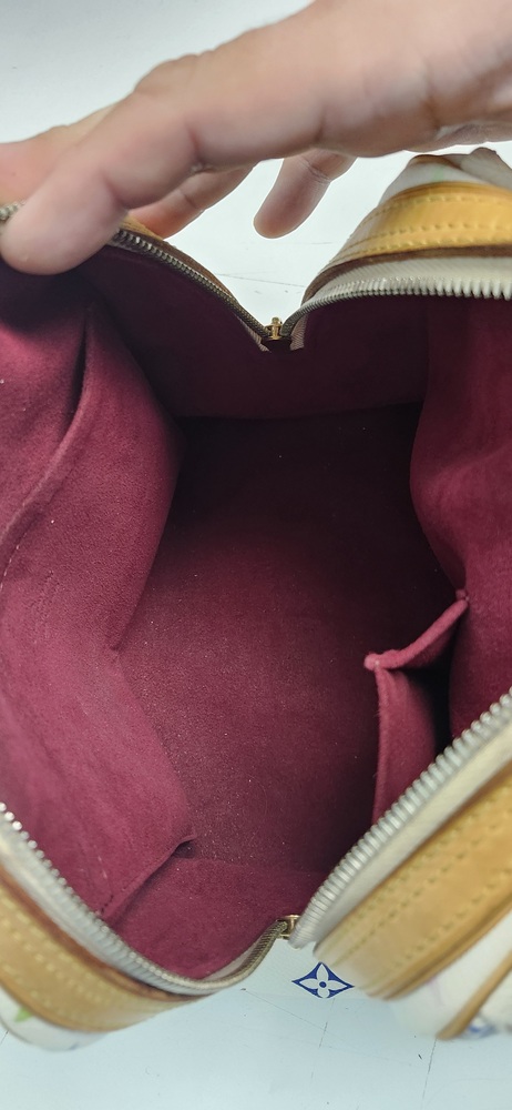 Pre-owned. Exterior canvas shows some small marks and wear. Vachetta leather has patina, darkening, and a few water spots from normal use. Hardware has light wear. Interior lining is clean with light signs of use. There is a slight smoke odor. Overall still a solid, functional vintage Murakami piece.