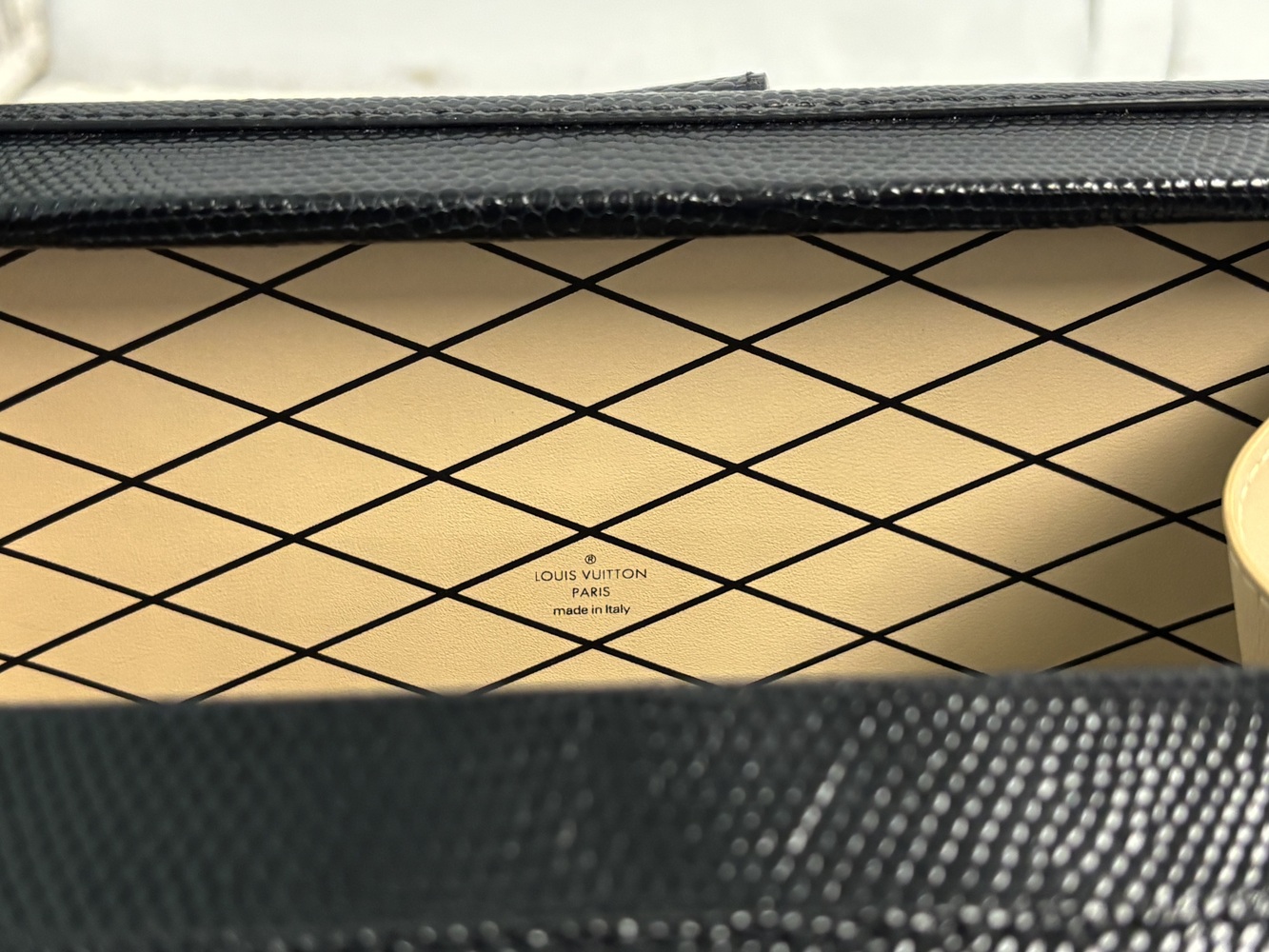 Unveil your exquisite taste with a Louis Vuitton Malle Lizard Skin Box Bag. A rare gem of unparalleled sophistication, this accessory masterfully embodies the fusion of luxury and exoticism. Limited availability enhances its allure, making every hue-dappled scale a testament to timeless excellence. Elevate your style venture beyond ordinary.