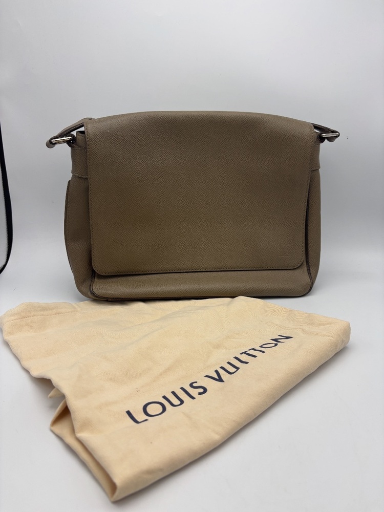 Classic Louis Vuitton style meets everyday functionality with this olive green messenger bag designed with quality craftsmanship and timeless appeal. This piece is perfect for on the go sophistication.