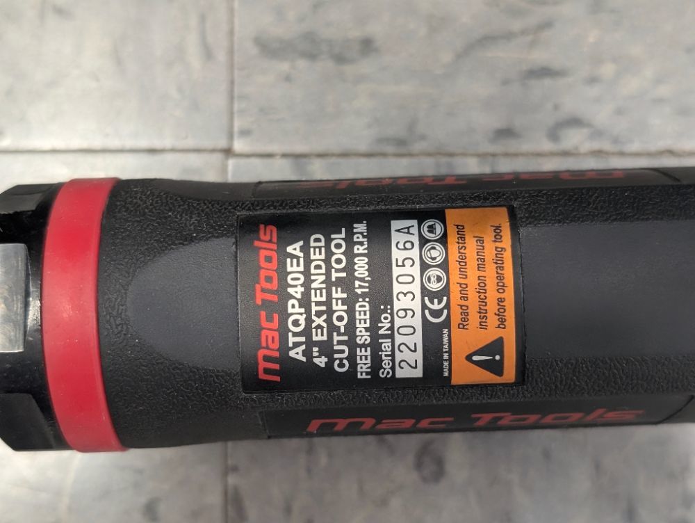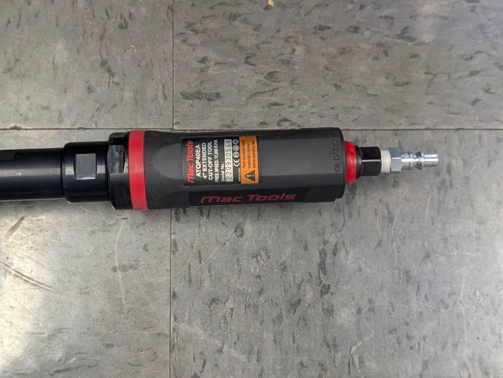 Experience precision and power with the Mac Tools ATQP40Ea Air Cut Off Tool. Designed for durability and high-performance, this air-powered tool delivers smooth, fast cuts through metal, pipes, and more. Its lightweight, ergonomic design reduces fatigue during extended use, while the high-speed motor ensures efficient work on the toughest jobs. Perfect for mechanics, fabricators, and DIY pros, the ATQP40Ea is built to handle demanding tasks with ease. Upgrade your toolkit with this reliable, professional-grade cut off tool that gets the job done faster and cleaner. Ready to work when you are!