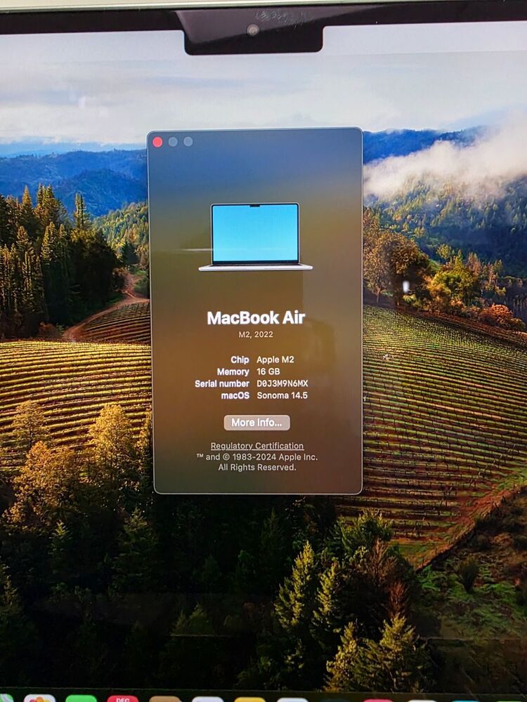 Apple MacBook Air A2681 features the advanced M2 chip, 16GB RAM for efficient multitasking, and 256GB storage capacity.
