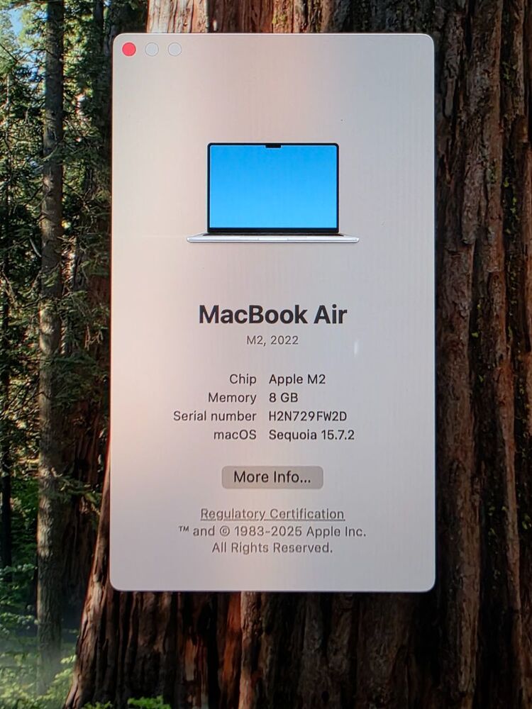 2022 MacBook Air A2681, M2 chip, 8GB RAM, 256GB storage, enhanced performance and efficiency.
