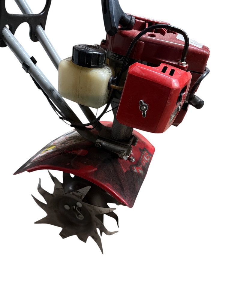 A compact, lightweight tiller that delivers big tiller power. The Mantis 9 in. Gas-Powered 2-Cycle Garden Tiller and Cultivator weighs just 20 lb. This mini tiller breaks through sod and clay faster and easier than using a shovel. It digs perfect planting holes for new trees and shrubs. Turn the tines around to the cultivating position and speed-weed the garden. This tiller is compact enough to use near plants or along fences and walls. It lifts easily into raised garden beds. The soft, flared grips are designed for comfort. It also comes with a flush-mounted throttle with a palm-controlled switch for variable speed control and easy operation.
