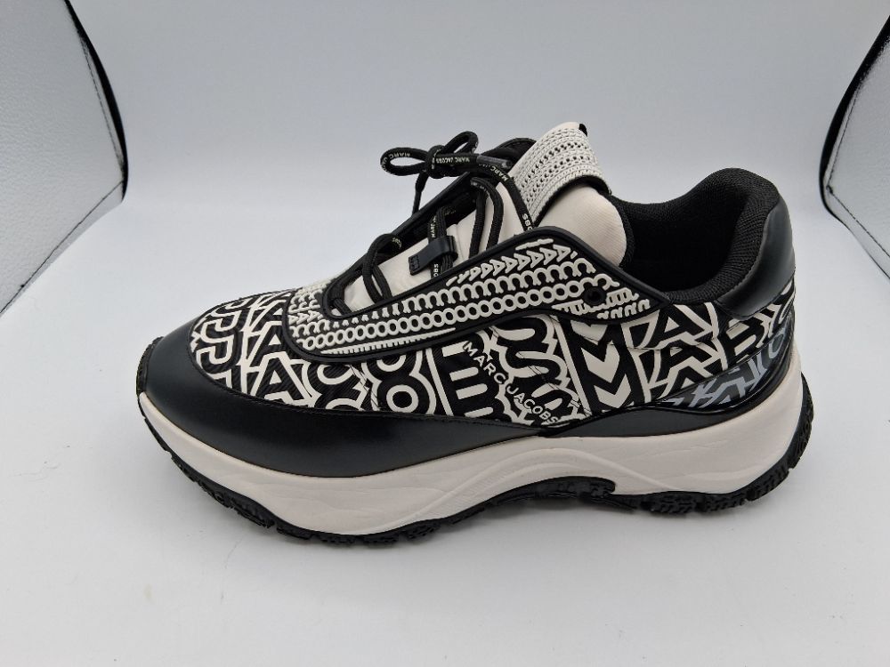 The Monogram Lazy Runner sneakers by Marc Jacobs made of technical fabric with monogram pattern and leather and rubber inserts. Closure with logoed laces, logo patch on the tongue, fabric-lined interior with with removable insole, rubber sole featuring monogram pattern on the bottom.
