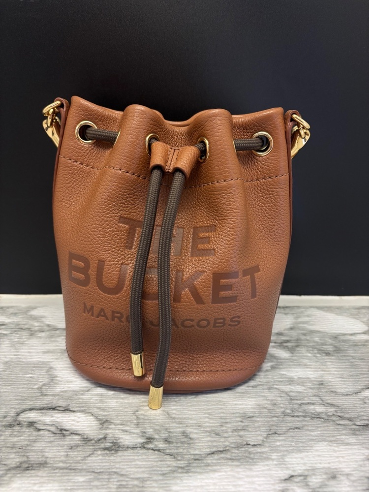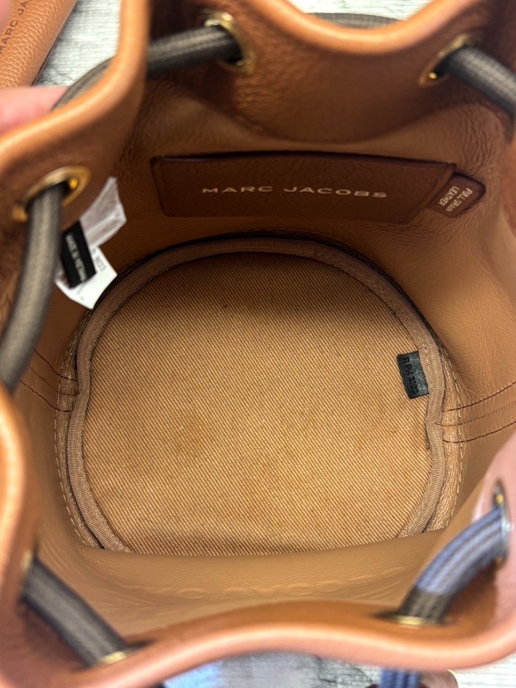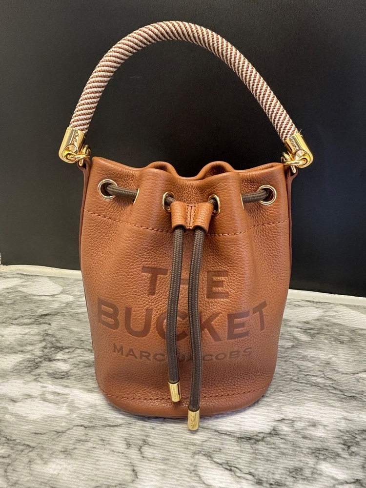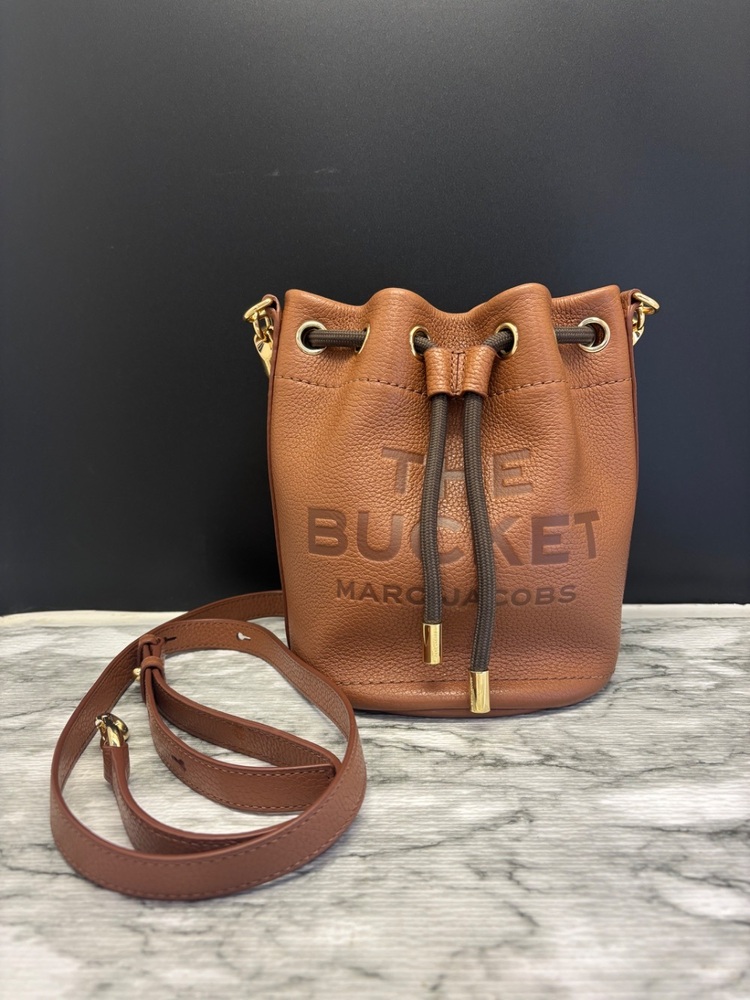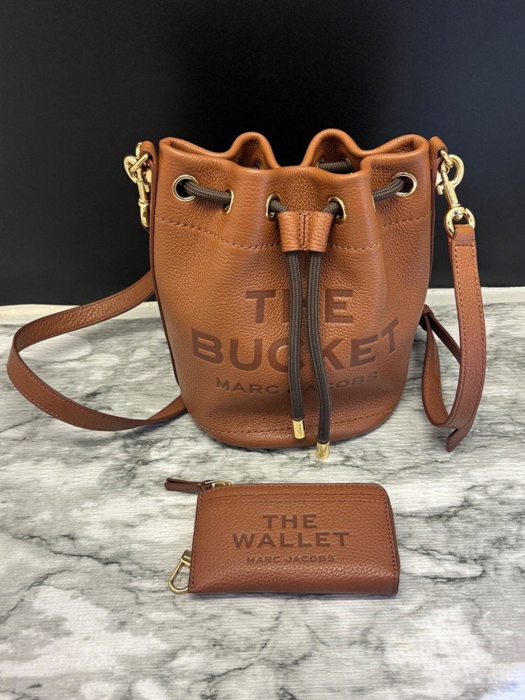 The Marc Jacobs Leather Bucket Bag and Wallet set in elegant Argan Oil color offers a sophisticated style. Crafted from premium leather, the bag provides space and durability, while the wallet is compact yet roomy. Both items showcase Marc Jacobs' signature attention to detail. Limited stock available.