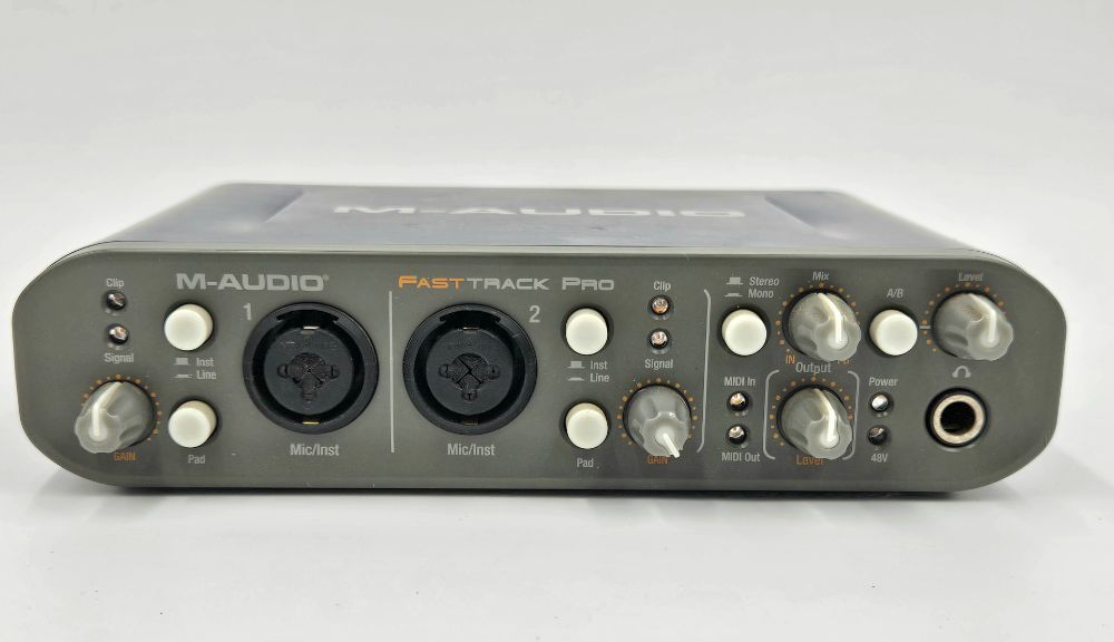 2 front-panel XLR / TRS combo inputs (mic or instrument) with gain control, pads, and phantom power.