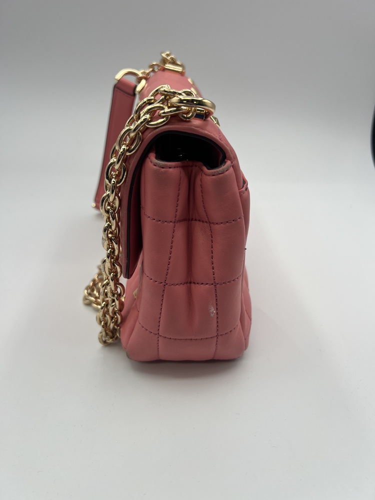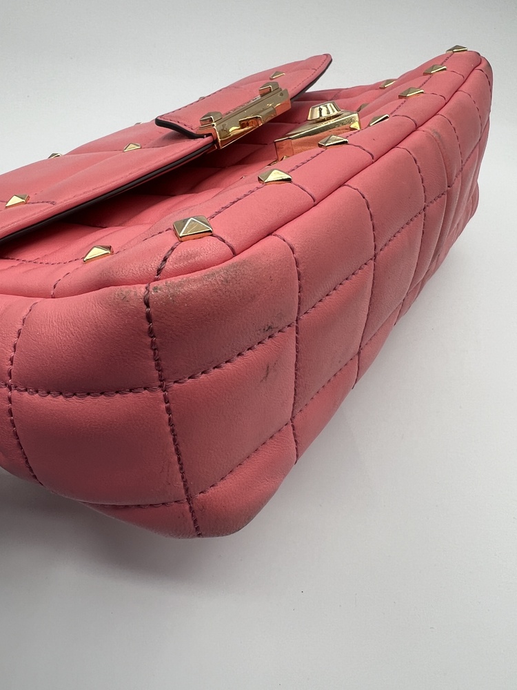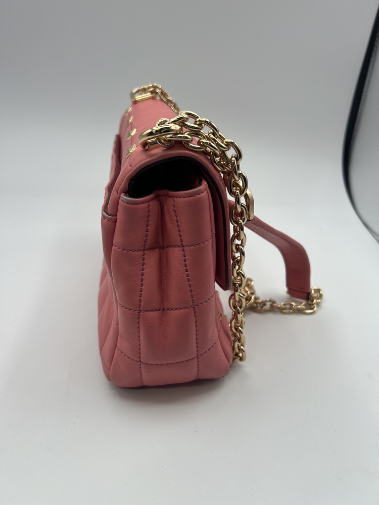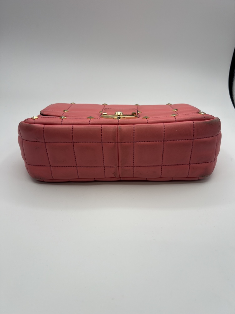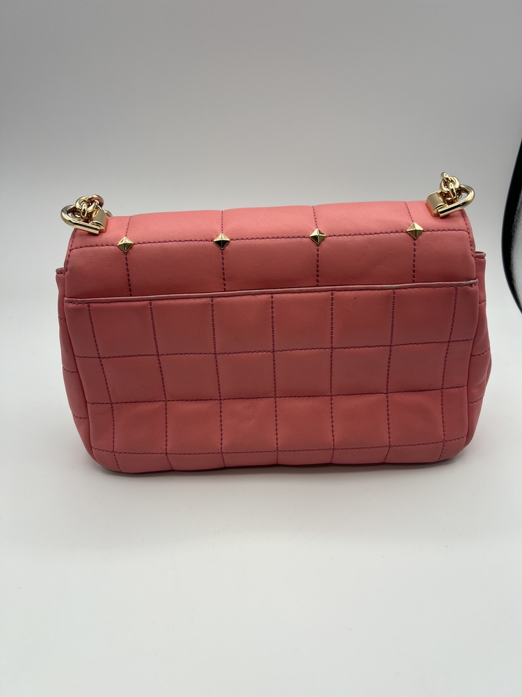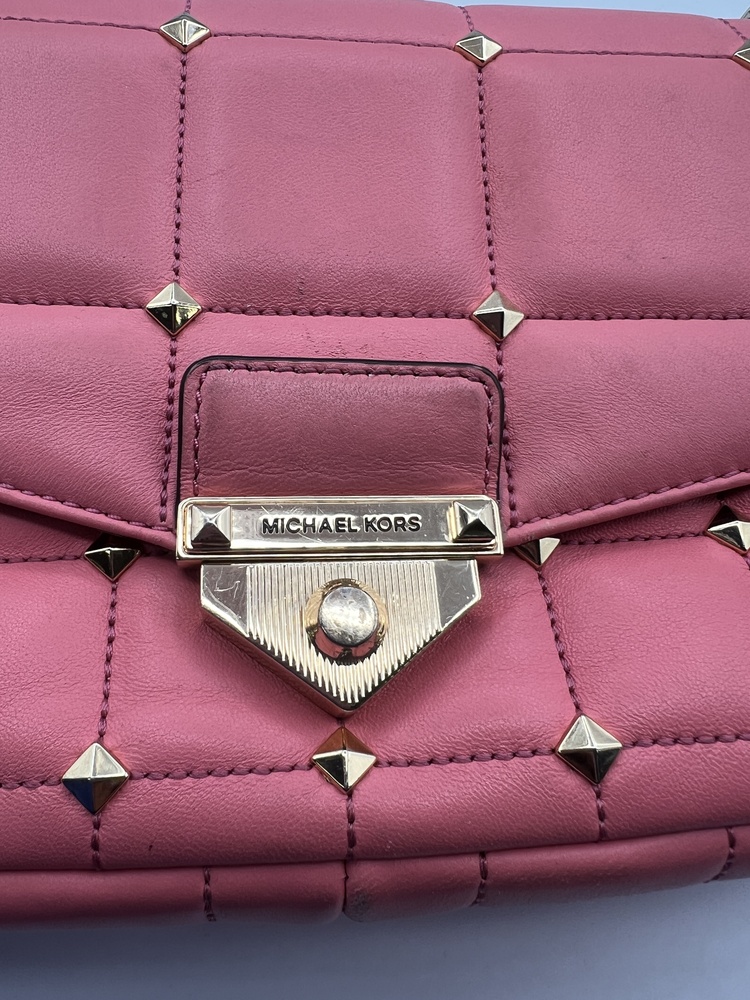 Michael Kors Pink Quilted Studded Shoulder Bag – Gold Chain Strap – MK Lock Closure