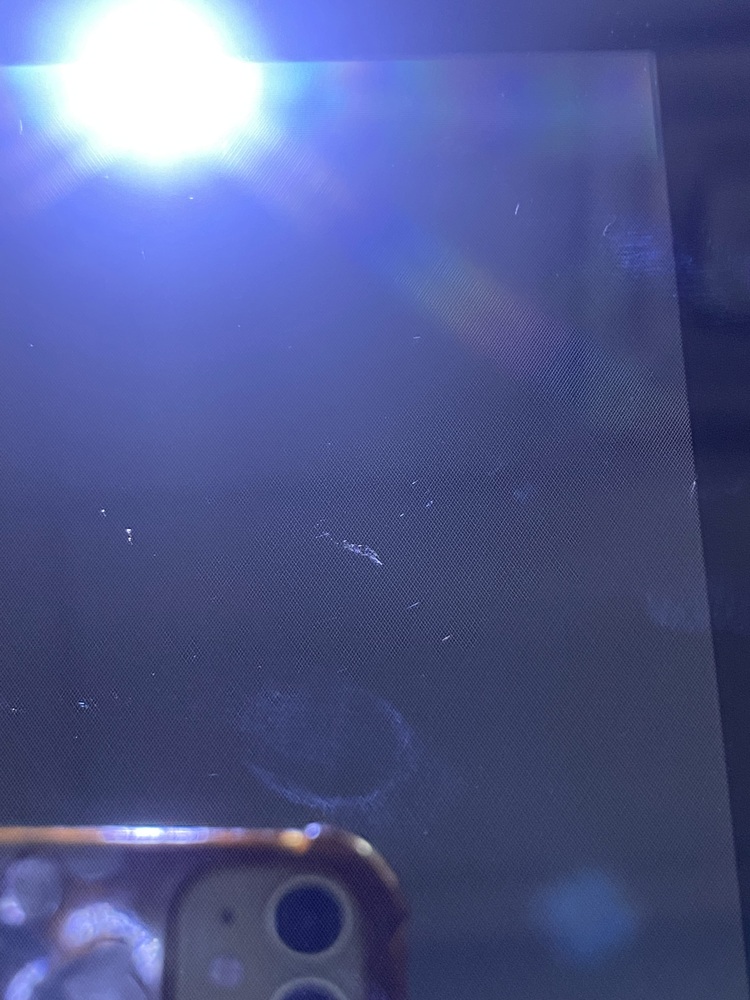 ***There are a few small light spots on the screen. It hard to see with a lighter background. There are also some light scratches on the screen. SEE PICTURES.
