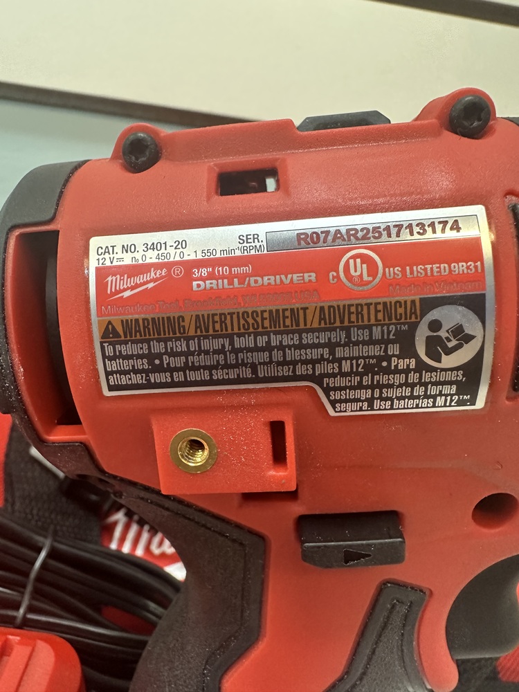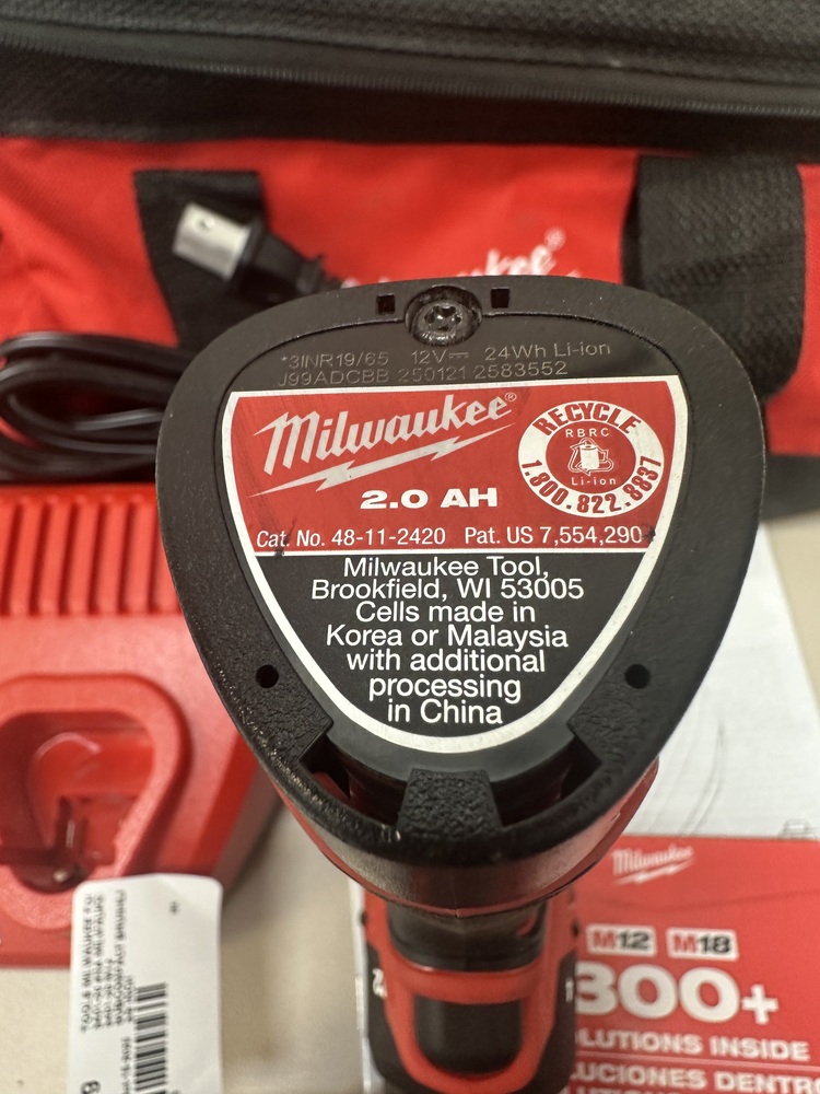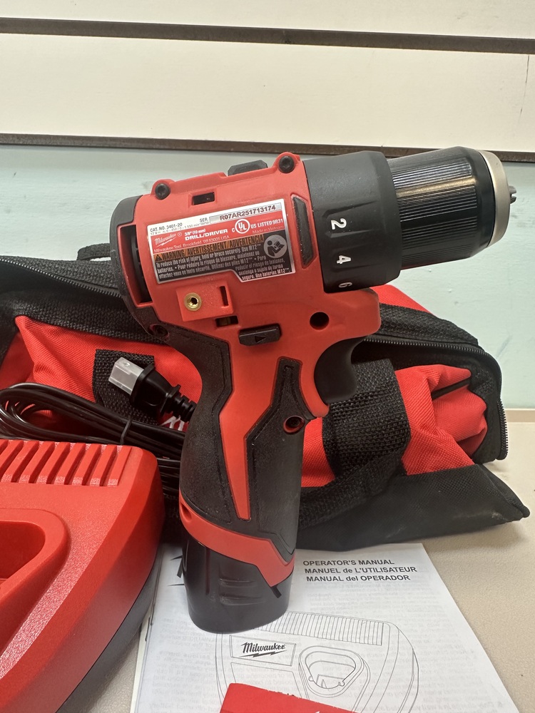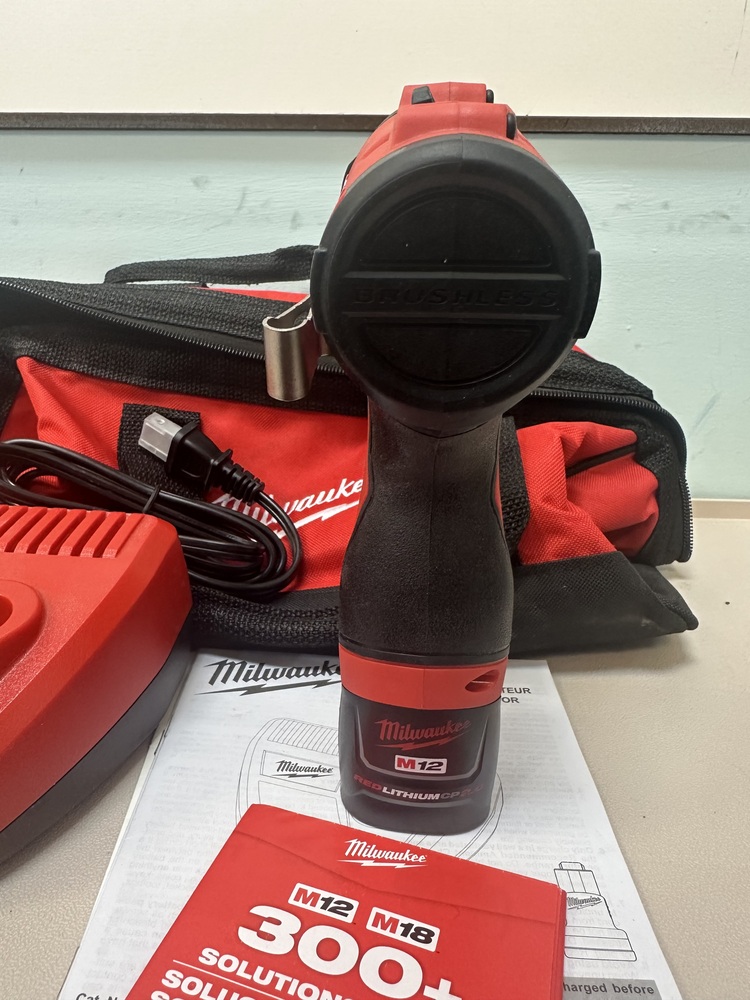 Milwaukee 3401-20 M12 Subcompact Brushless 3/8 Inch Drill/driver Kit battery,charger in bag