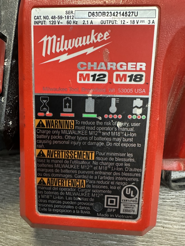 Milwaukee 48-59-1812 18V M12 / M18 Lithium ION Charger w/XC6.0 Battery