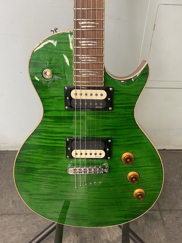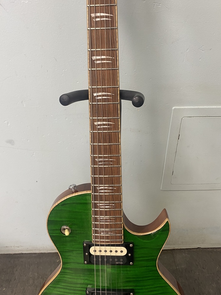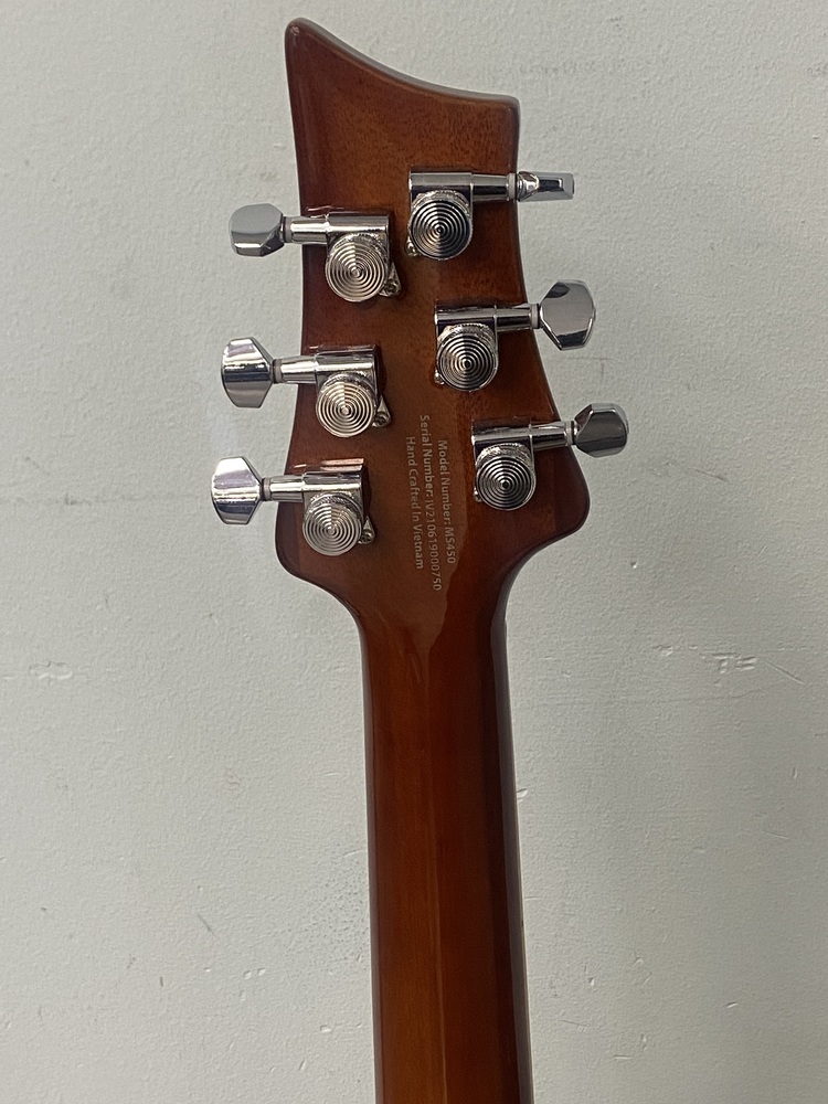 The MS450 Modern also includes high-output, dual-humbucking paraffin-dipped Alnico V pickups that reduce microphonics and unwanted feedback. Separate volume controls for each pickup let you blend as needed, while a pull coil-tap allows you to split either humbucking pickup into a single coil. The flame maple binding and purfling further enhance the high-end look. High-ratio locking tuners provide precise tuning, while the jumbo frets and string-thru body design offer increased sustain and bite.