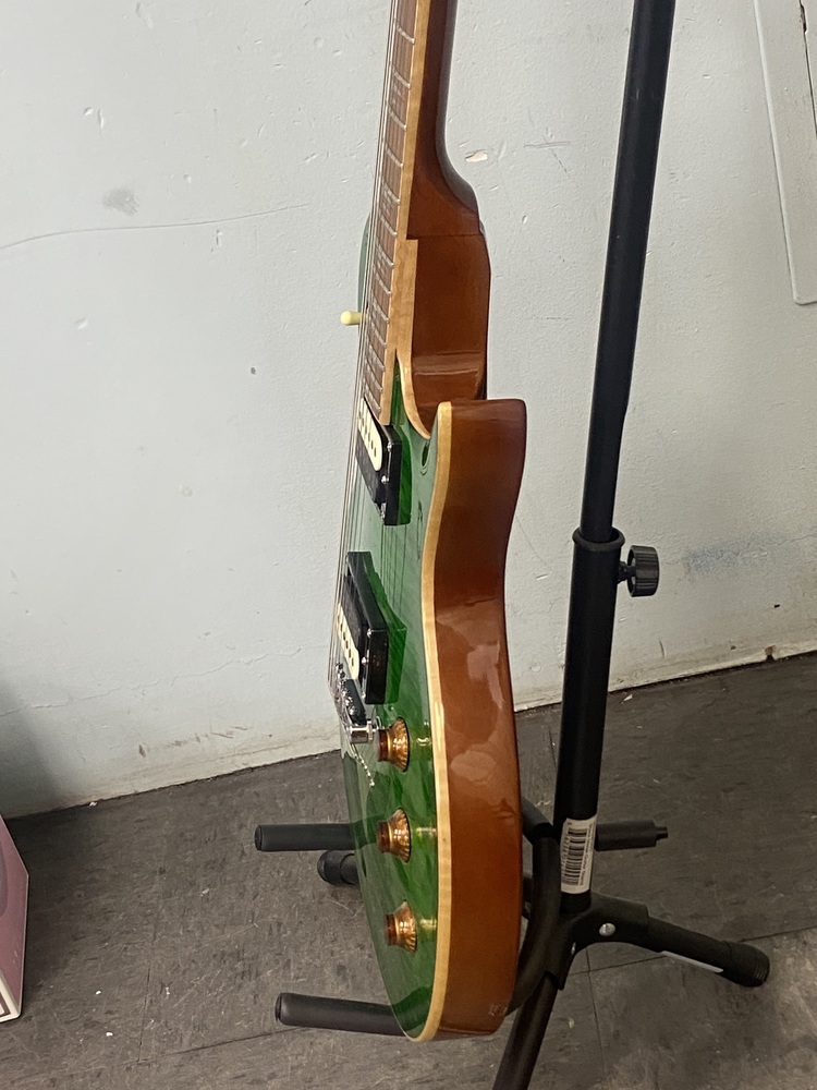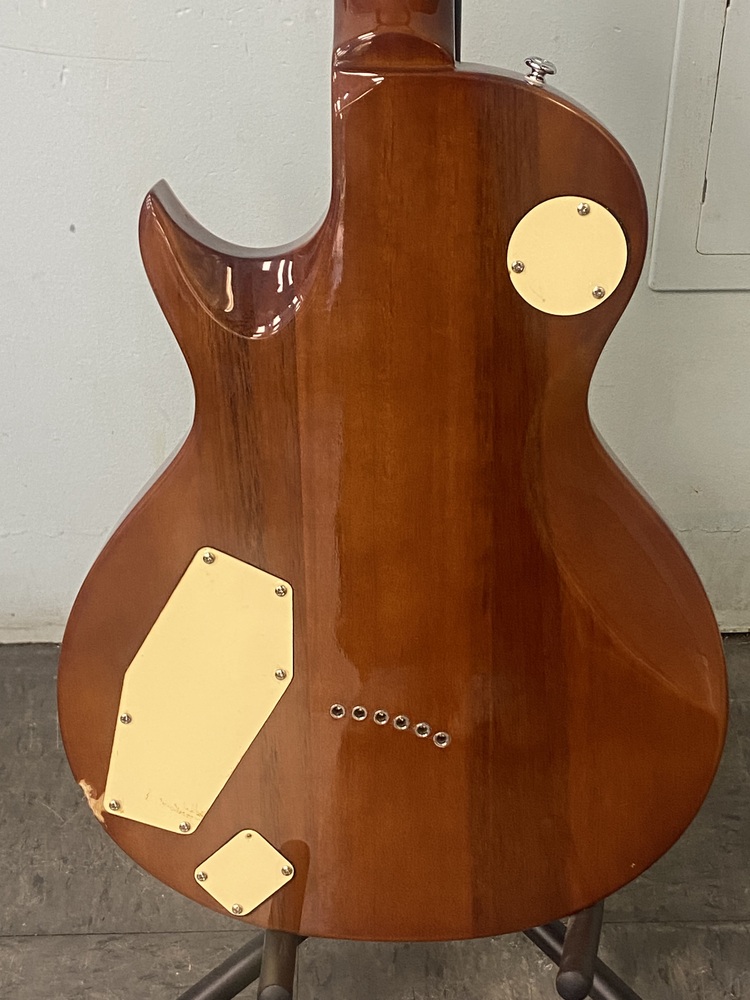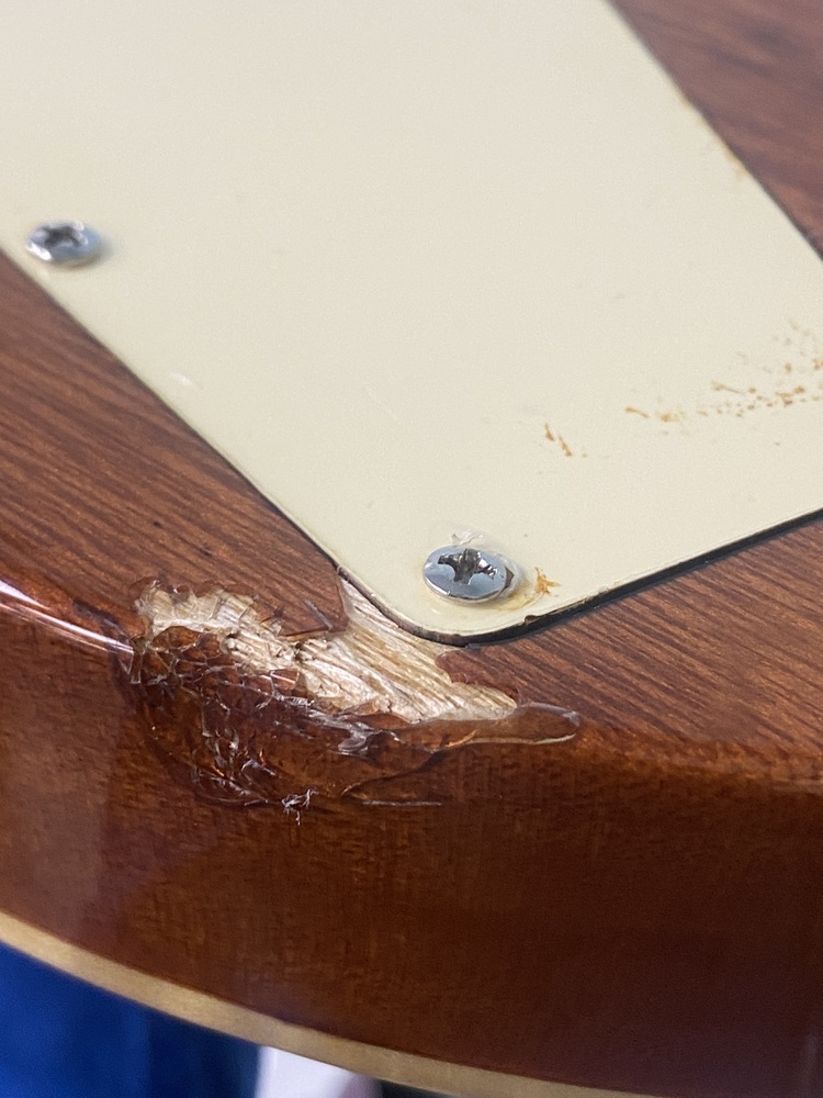 This guitar plays well. It does have a chip on the back of hte guitar. SEE PICTURES.