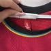- Color: Deep red/maroon with teal, yellow, and blue accents