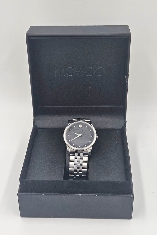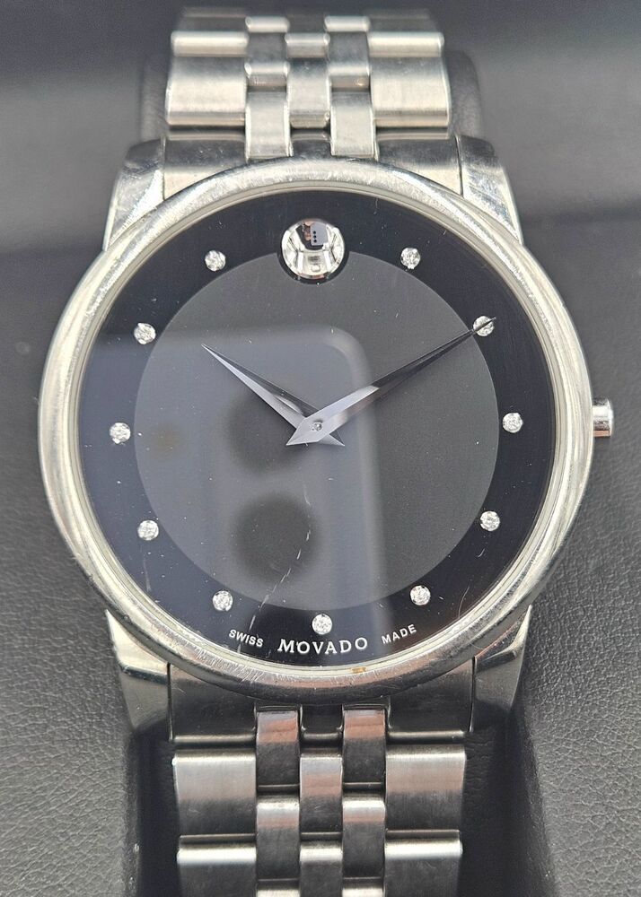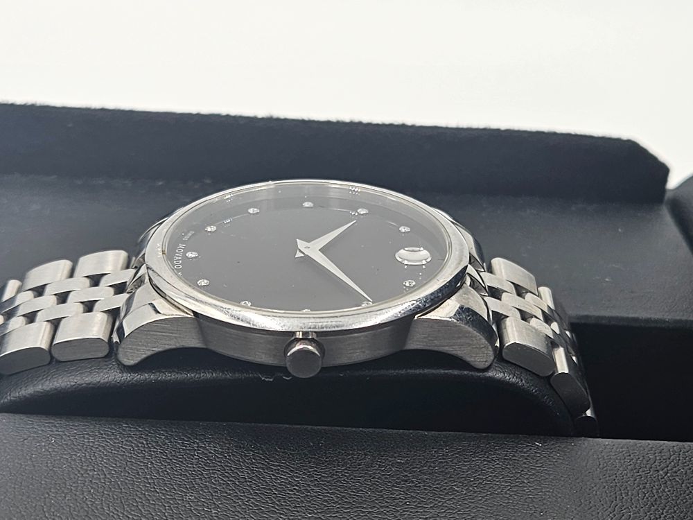 Dial: black, signature museum dot at 12 o’clock, minimalist hour-markers or none.