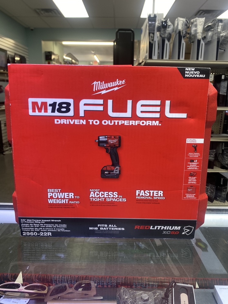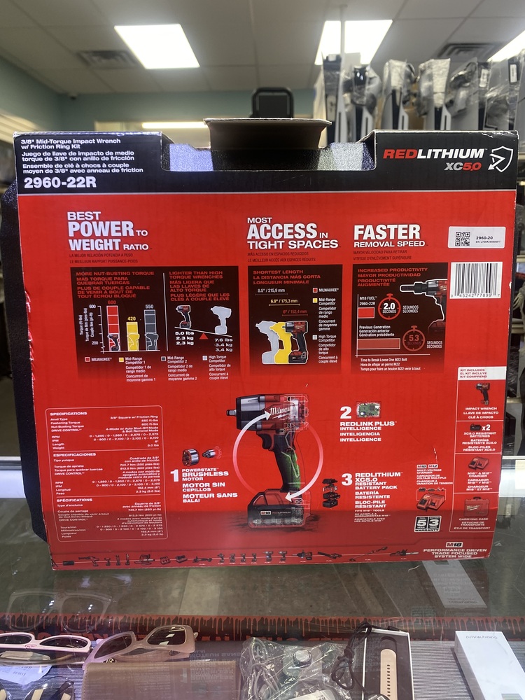 - Includes: M18 FUEL 3/8 in. mid-torque impact wrench with friction ring (2960-20), 2 M18 REDLITHIUM XC5.0 resistant battery pack (48-11-1850R), M18 and M12 Multimvoltage charger (48-59-1812), blow molded case
