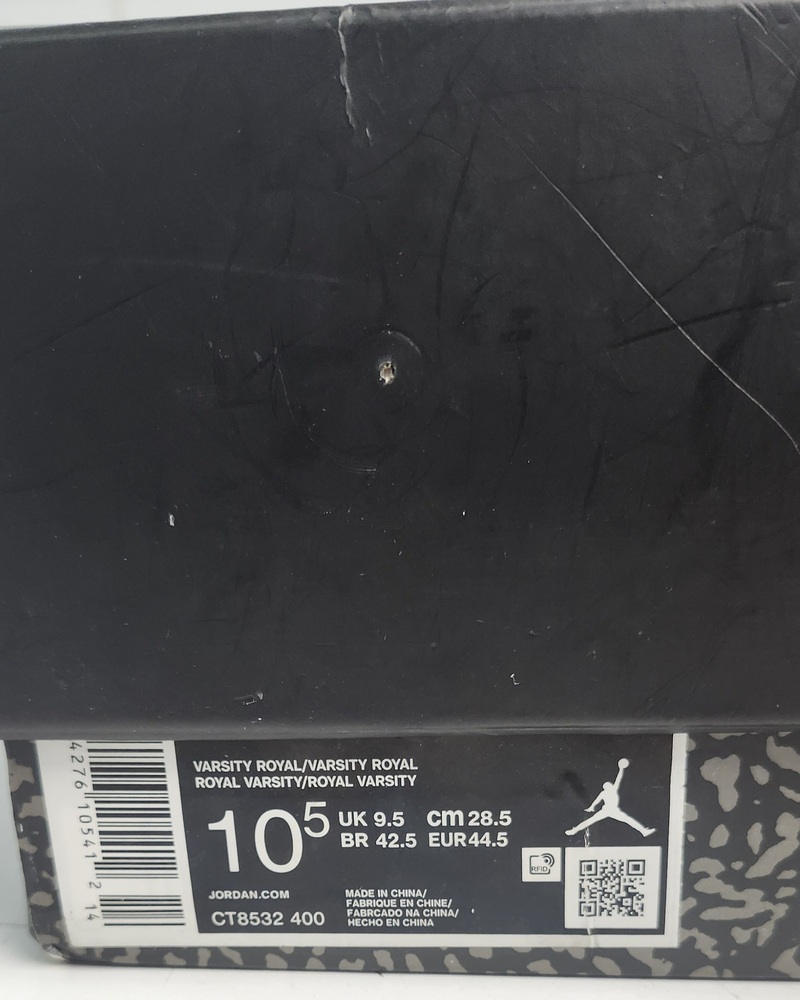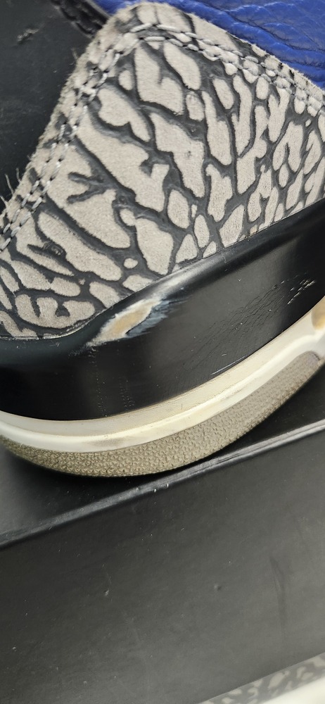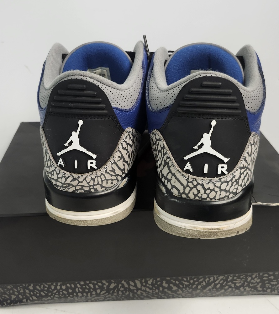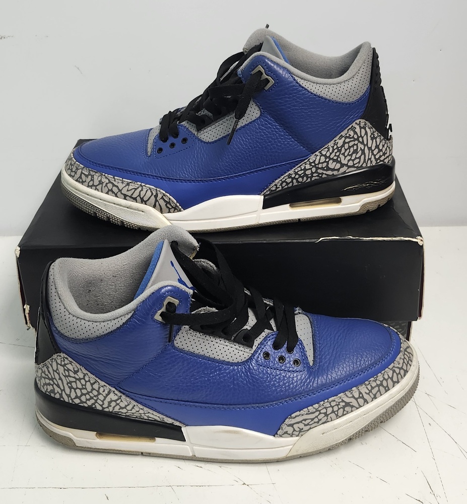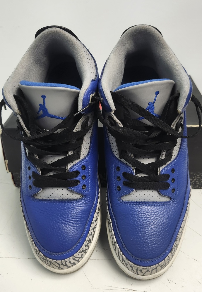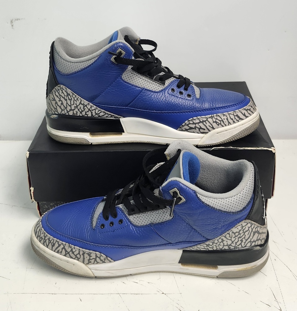 Air Jordan 3 Retro “Varsity Royal” in men’s size 10.5. These are preowned and fully wearable. The shoes show normal use and age but still look good overall. Insoles are included and everything is original.