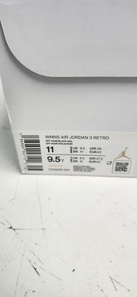 Women’s Nike Air Jordan 3 Retro “Off Noir / Black Sail.” Great pre-owned condition — clean uppers, light wear on soles. Includes original box. Women’s size 11 (fits Men’s 9.5).