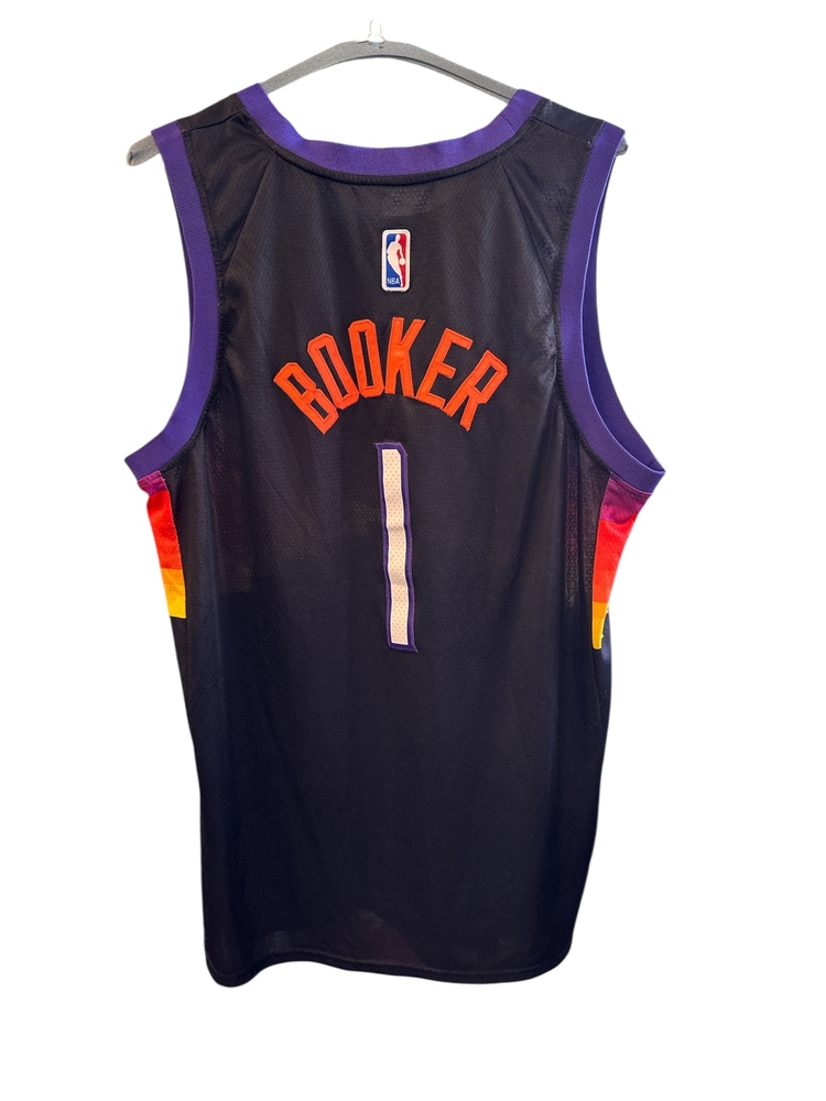 Devin Booker Phoenix Suns "The Valley" City Edition jersey. This jersey is part of the NBA's City Edition uniform line, which represents the local stories and heritage of each team's city