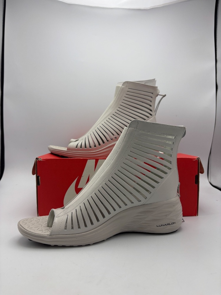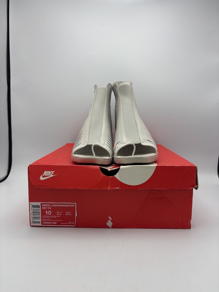 Step into sporty-chic style with these Nike Lunarsandiator Sandals in Women’s Size 10. A bold blend of fashion and function, these sandals combine the comfort of Nike's Lunarlon cushioning with the edgy design of a gladiator-style upper. Perfect for casual summer wear, travel, or just making a statement wherever you go.