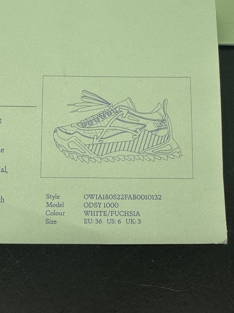 Off White Odsy-1000 Sneakers White/Fuchsia US Size 6