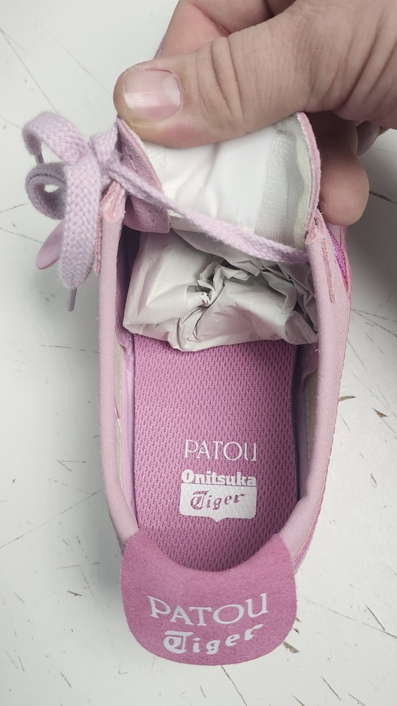 Limited edition pair featuring Patou branding on the heel tabs and tongue, plus the signature Patou tiger charm on the laces.