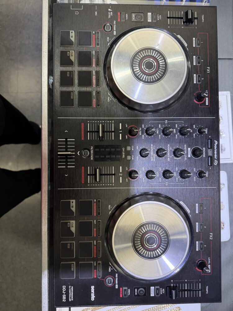 The Pioneer DJ DDJ-SB2 is a 2-channel DJ controller designed for Serato DJ. The top four rubber pads lets you fire Auto Loop, Sampler, Hot Cue and Manual Loop, and the bottom four lets you access Cue, Sync, Play, Cue, and Shift. With large jog wheels, it gives precise control over scratching. Using the trim knob and level meters, you can easily monitor the input volume on each channel. This Pioneer DJ device is compatible with Windows 8, Windows 8.1, Windows 7 with SP1, and Apple Mac OS X 10.8/10/9/10.10.