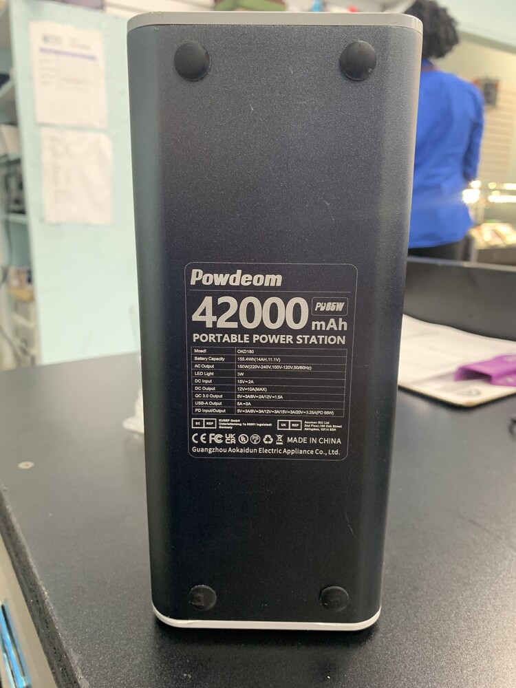 is a portable power station with a battery capacity of 42,000mAh (155Wh). This device provides power for laptops, smartphones, tablets, and small appliances through its multiple charging ports and 150W AC outlet.