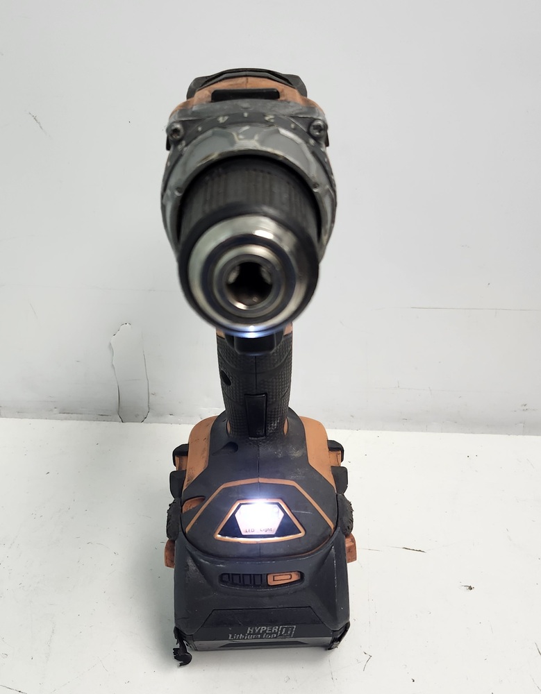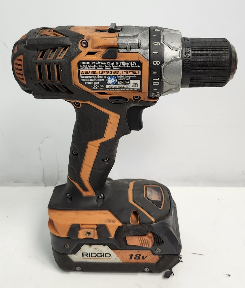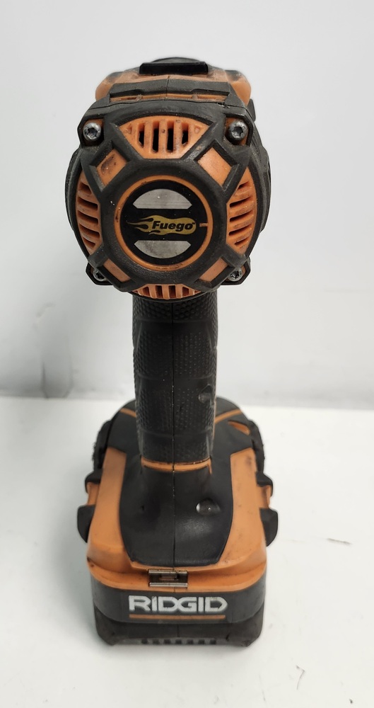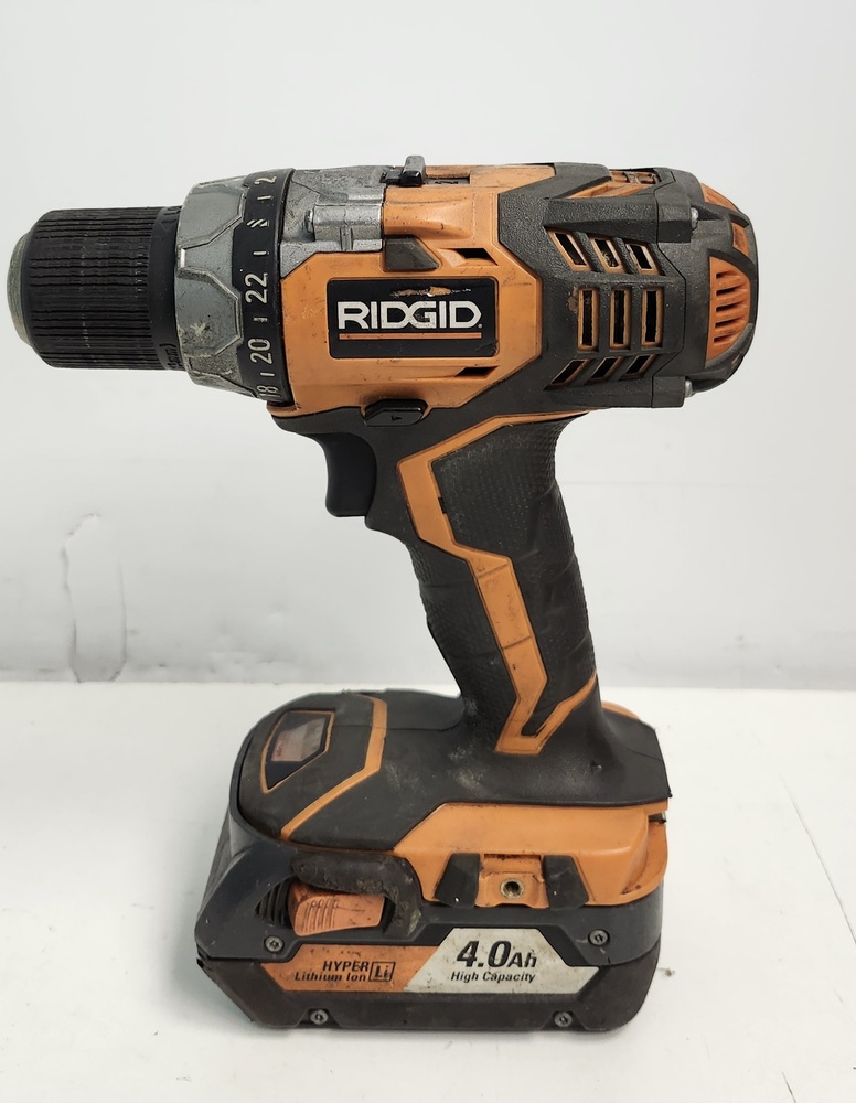 Pre-owned Ridgid R86008 18V Fuego Drill/Driver with 4.0Ah Hyper Lithium-Ion battery and Ridgid 18V charger.