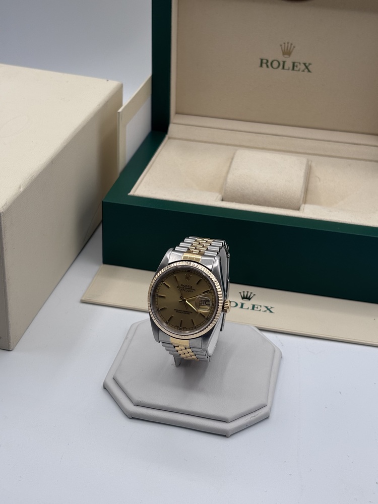 Rolex 2 Tone Stainless Steel & Gold Dial Watch