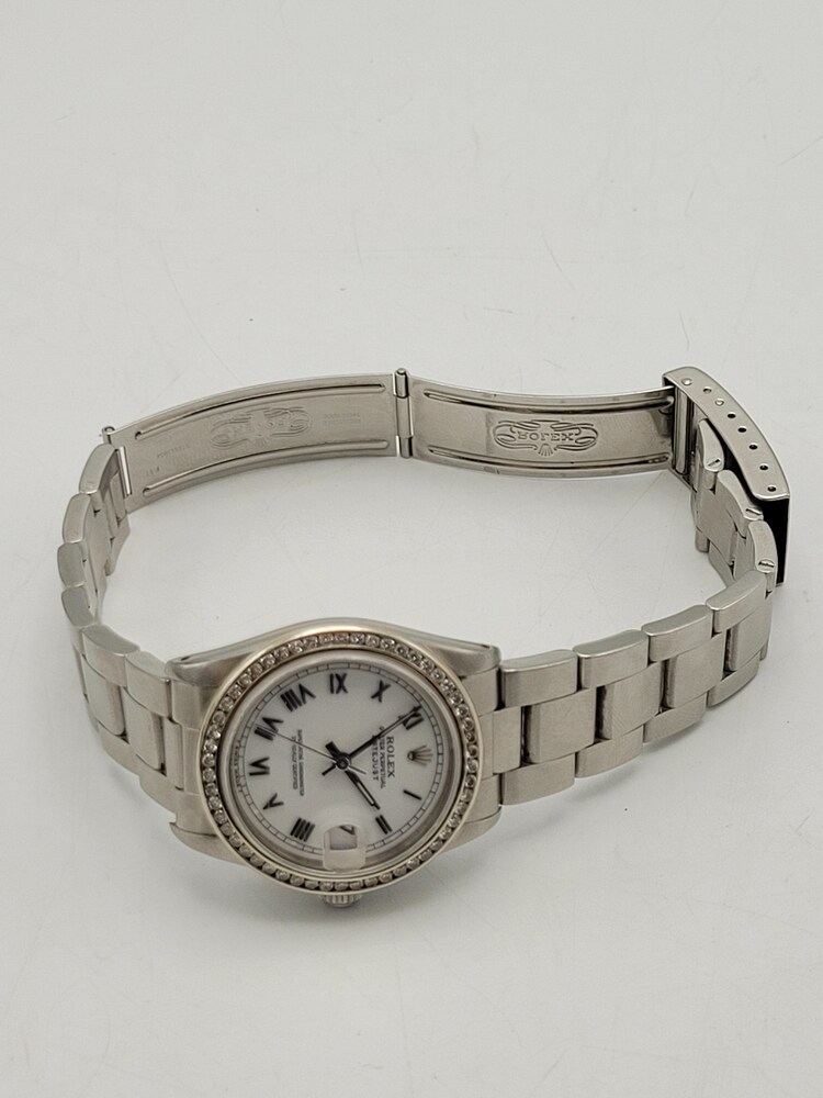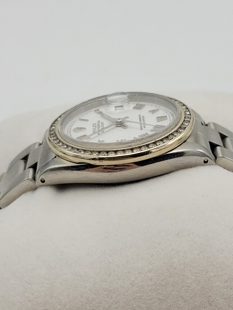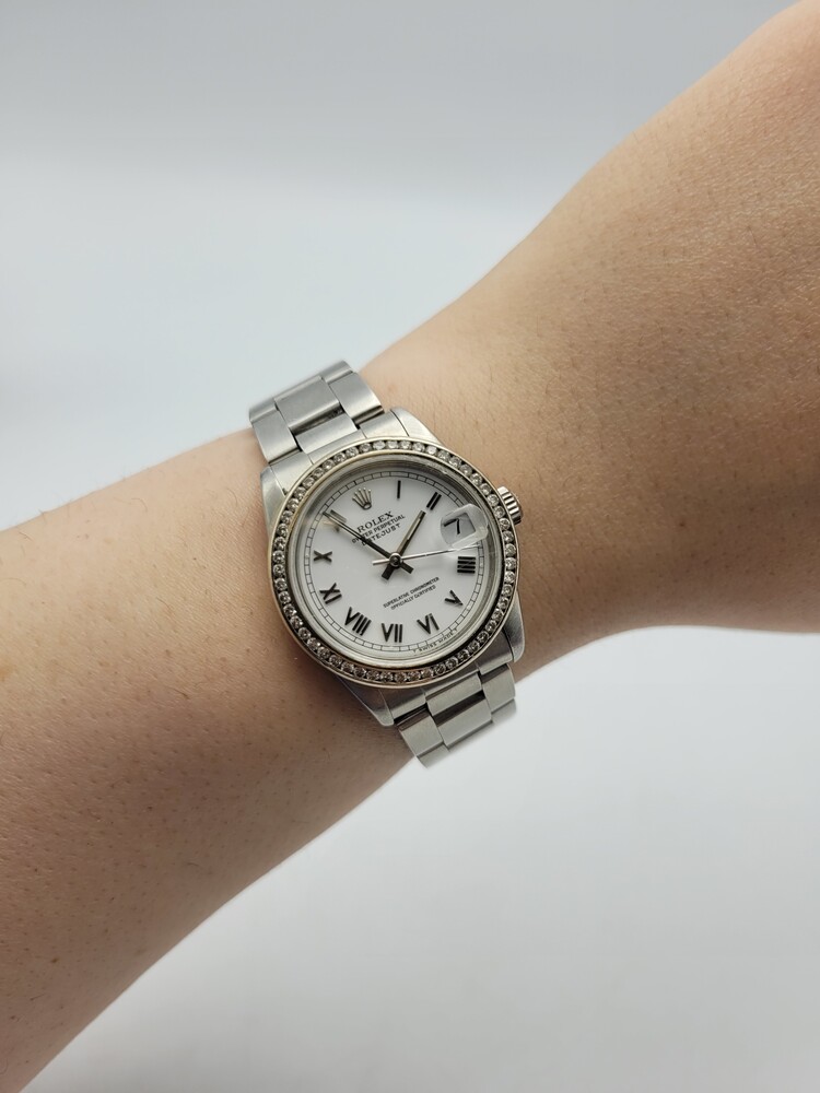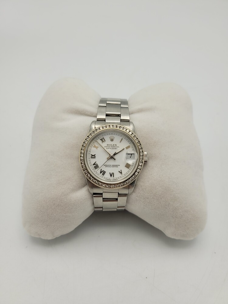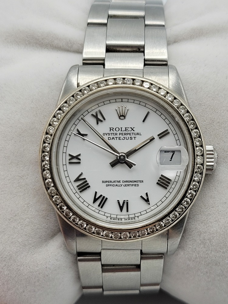 Rolex Ladies Datejust 31mm Stainless Steel – White Roman Dial • Oyster Bracelet • Aftermarket Diamond Bezel