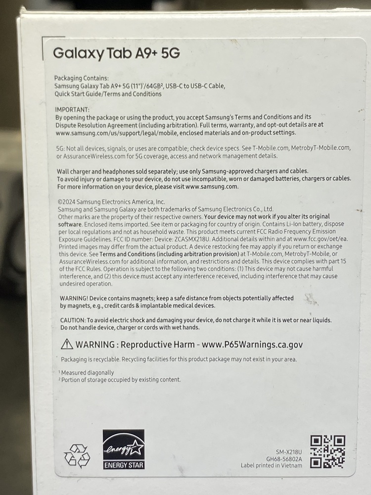Samsung Galaxy Tab A9+ 5G 11” 64GB Android Tablet, Wi-Fi SM-X218U - Graphite