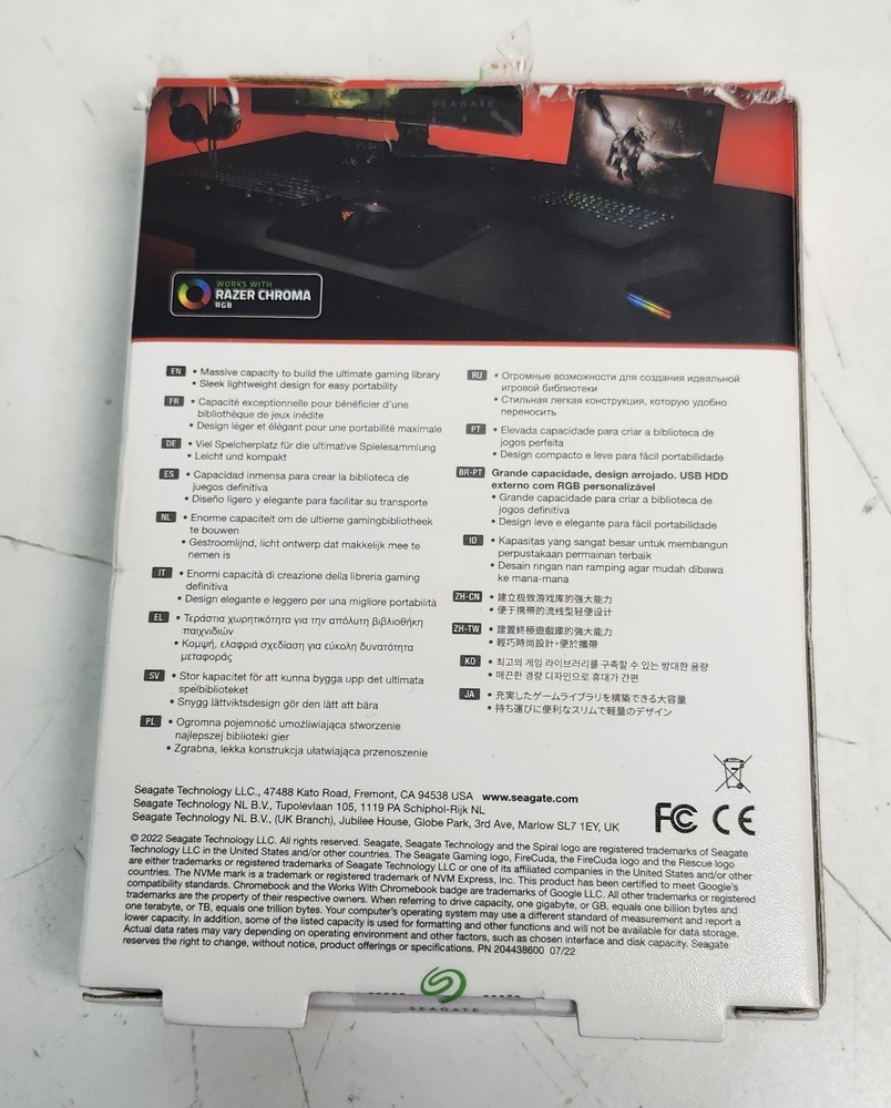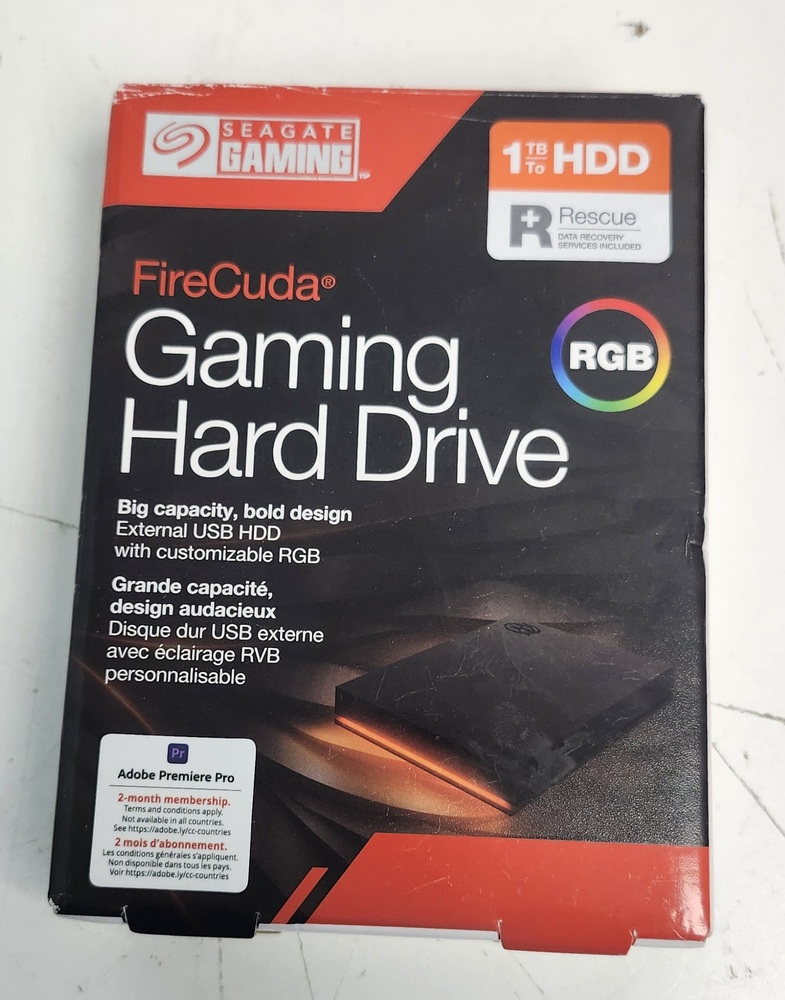 Seagate FireCuda Gaming 1TB external hard drive with RGB lighting. Tested and working properly. USB-powered and ready to use for PC, Mac, or gaming storage expansion.