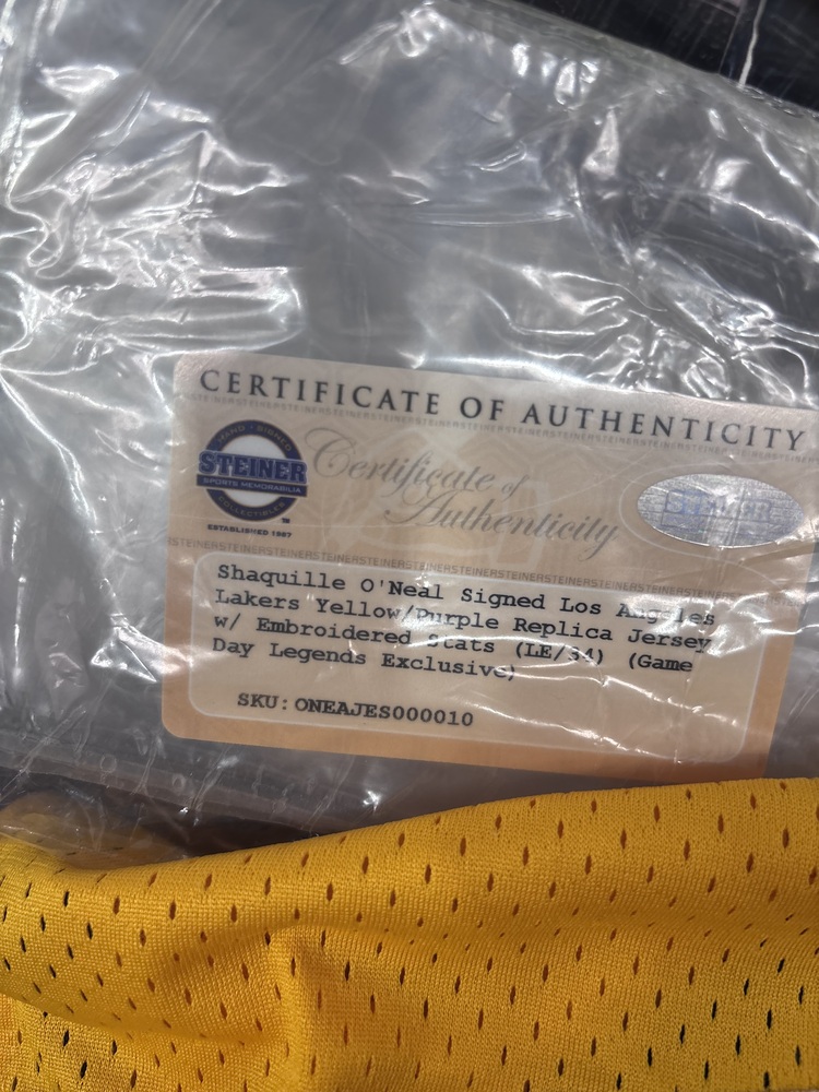 Shaquille O'Neal Los Angeles Lakers Jersey Autographed And Authenticated By Steiner Sports Memorabilia With Certificate