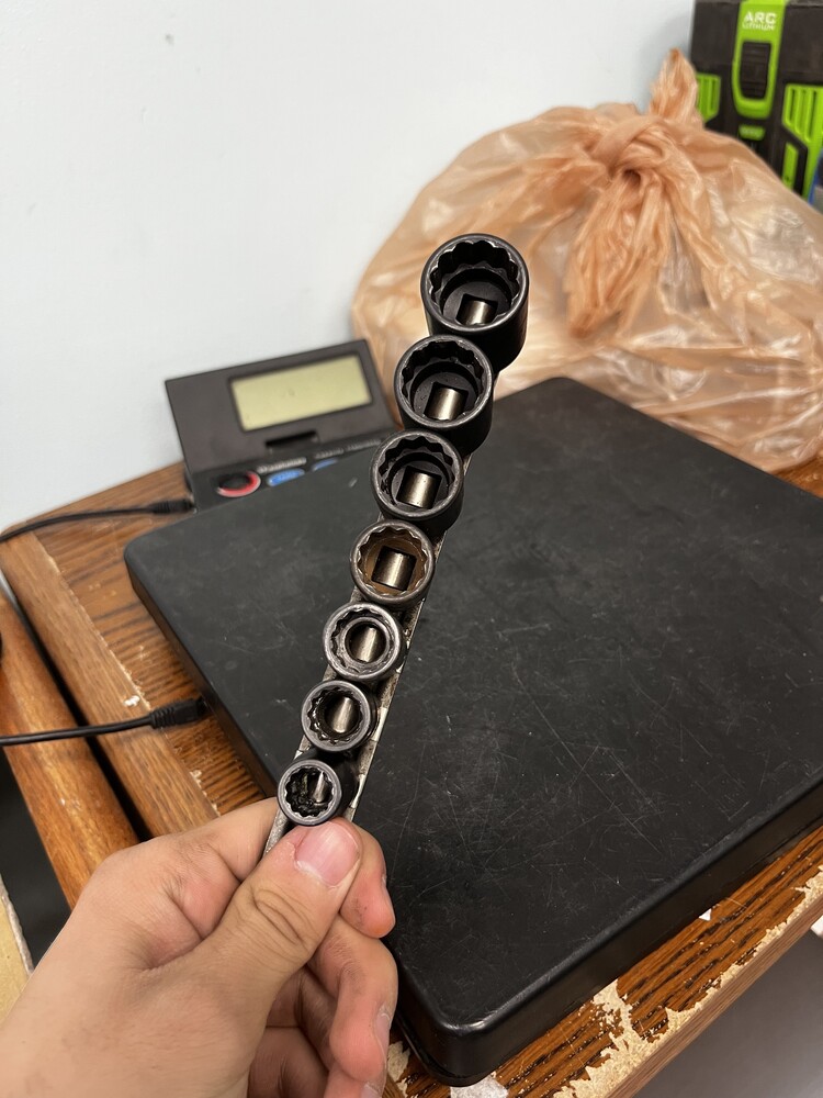 High-quality Snap-on 7-piece impact socket set built for professional performance and long-lasting durability. Includes sizes from 3/8" to 3/4", all mounted on a convenient metal socket rail for easy organization note these sockets has been pre owned with wear all over use pictures as refrerence