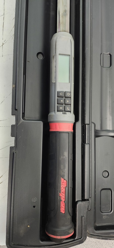 Snap-on digital flex-head torque wrench, model ATECH3F300VA, with a torque range of 15–300 ft-lb. Tested and working properly; display, buttons, and torque functions operate as they should. Features audible and visual alerts, multiple measurement units, and a flex head for improved access. Special 100th Year Edition (1920–2020) marking on the shaft. Normal cosmetic wear from use, no cracks or damage.