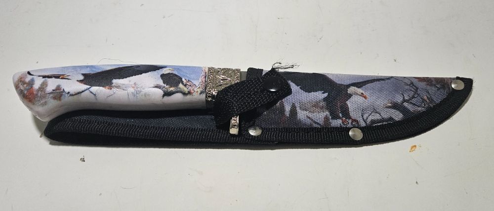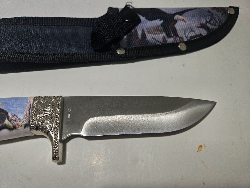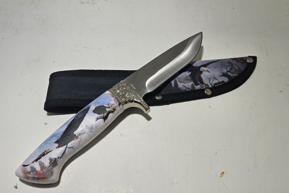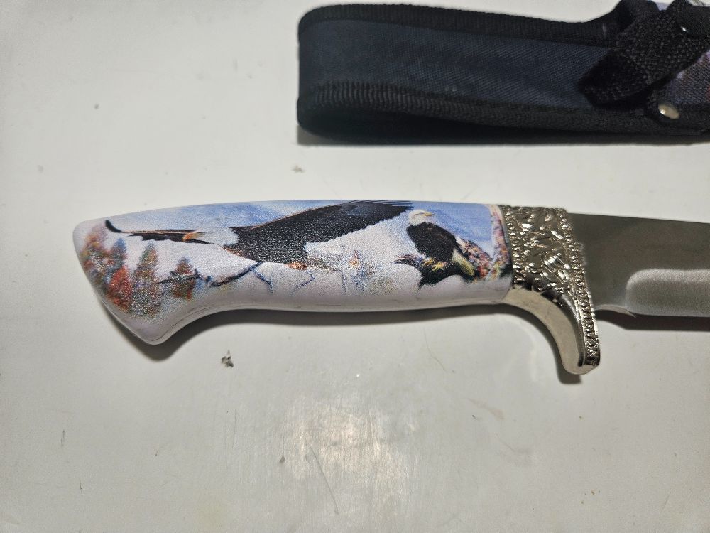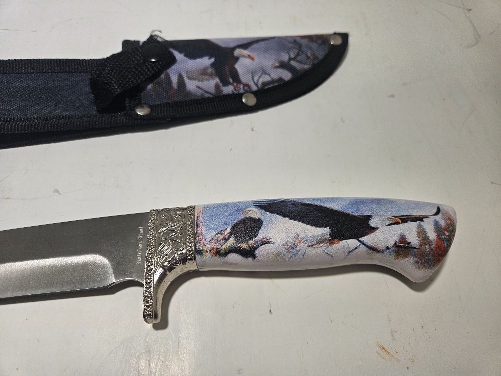 Stainless Steal Eagle Knife With Sheath , with a 4 3/4 inch blade in great condithon, please look at pictures to see condition,
