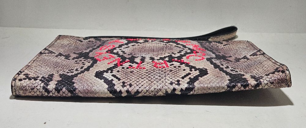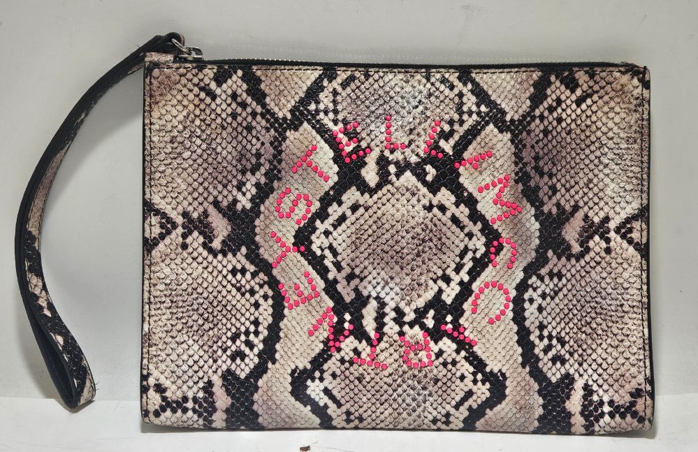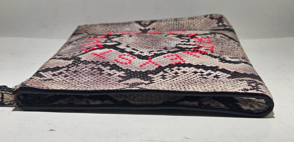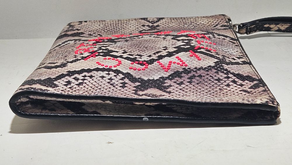 Features: Embossed logo, snake-effect texture, detachable wrist strap
