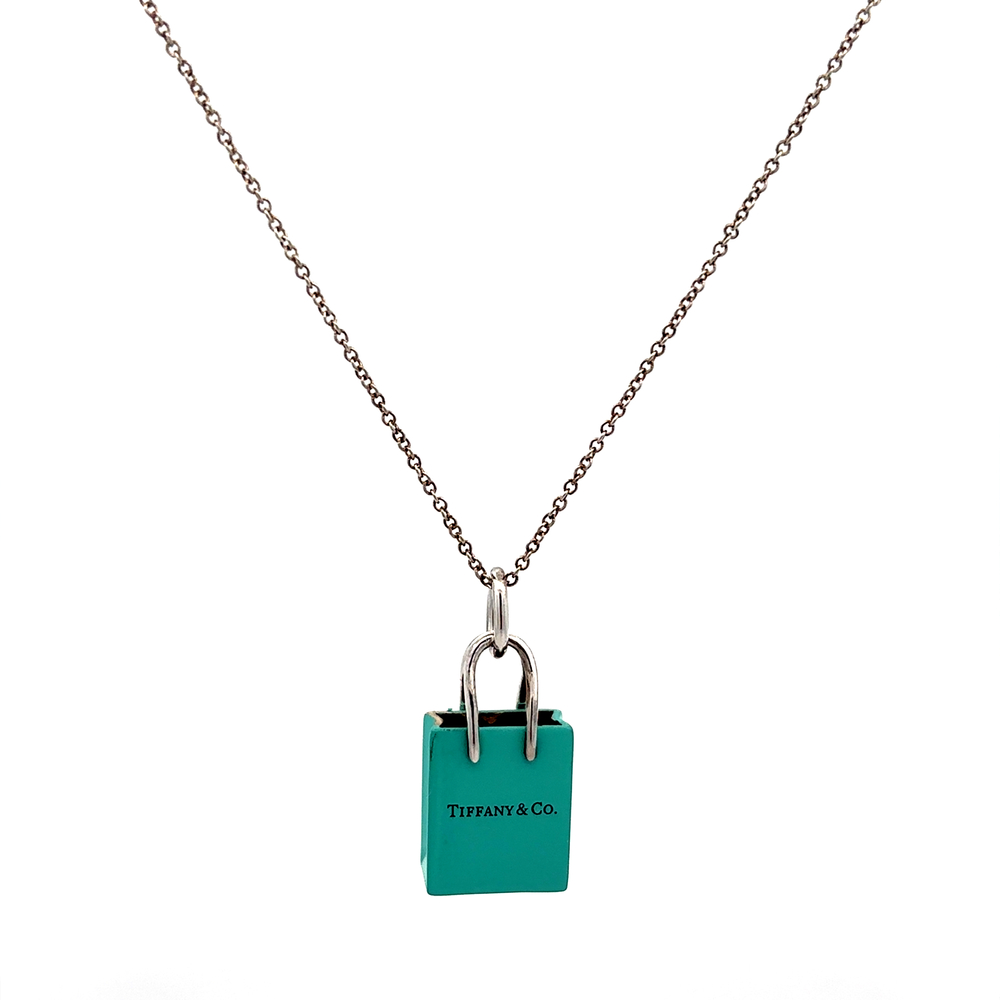 Style: Blue Enamel Shopping Bag Charm Necklace