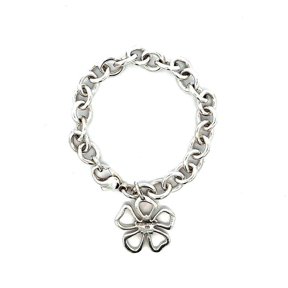 Style: Spring Hibiscus Open Flower Sterling Silver Bracelet
