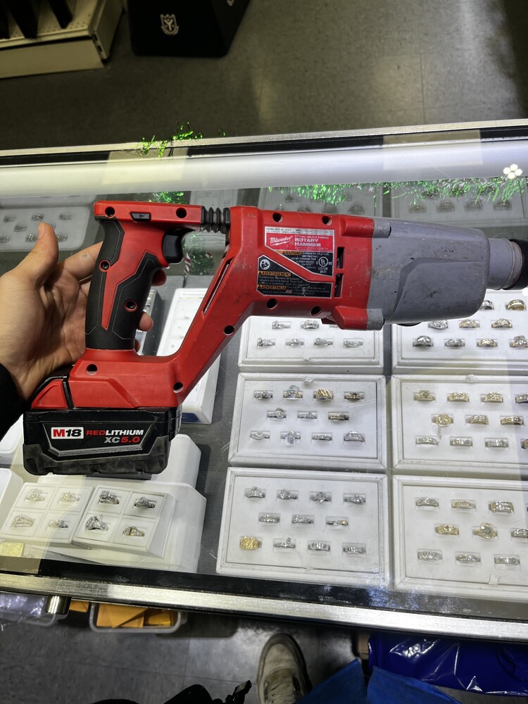 This used Milwaukee 2613-20 M18 Rotary Hammer is a heavy-duty tool built for drilling and chiseling through concrete, brick, and other tough materials. It shows normal cosmetic wear from use shown in pictures but is fully tested and works great. The included M18 REDLITHIUM XC 5.0 battery provides long-lasting power to keep you going on demanding jobs.