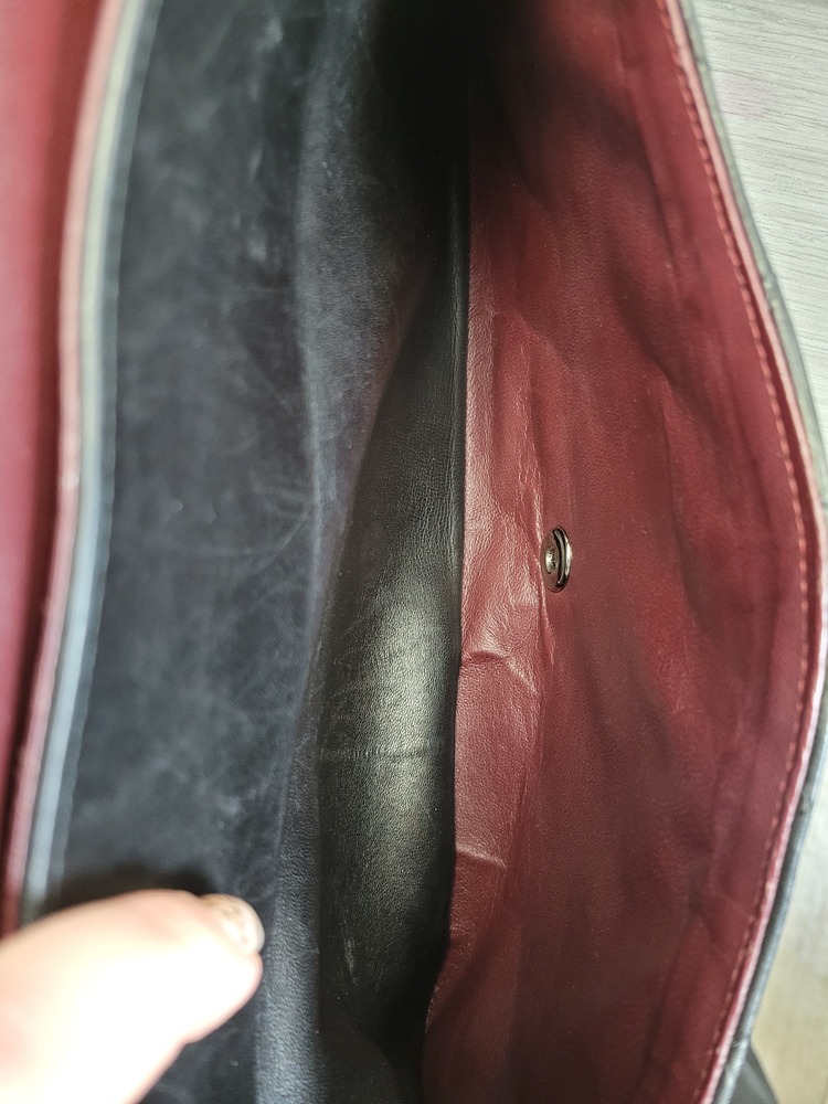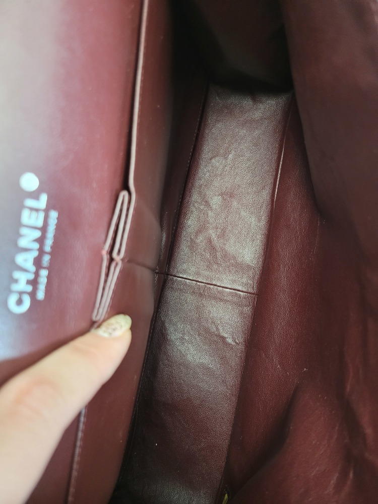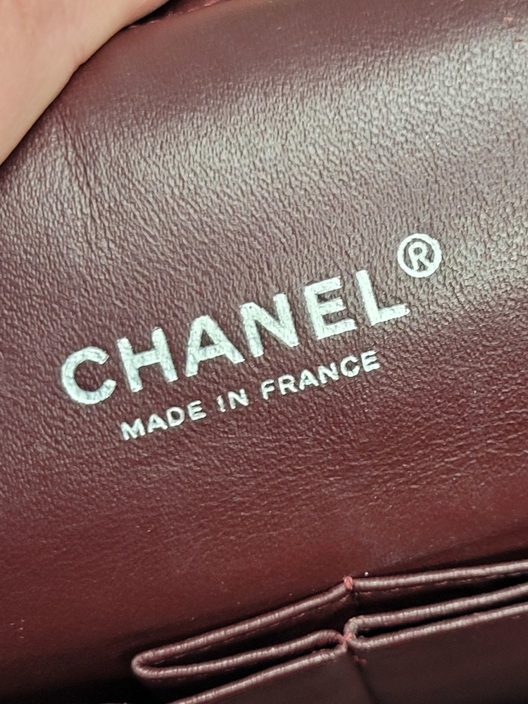 Inside, she features the classic burgundy leather interior with the stitched CC logo — a hallmark of true vintage craftsmanship. Multiple pockets keep your essentials organized while still serving that chic, minimalist silhouette. She has some gentle corner wear, light creasing, and minor signs of age that are expected from a bag of this era, but she’s still absolutely gorgeous and ready to be worn and adored.
